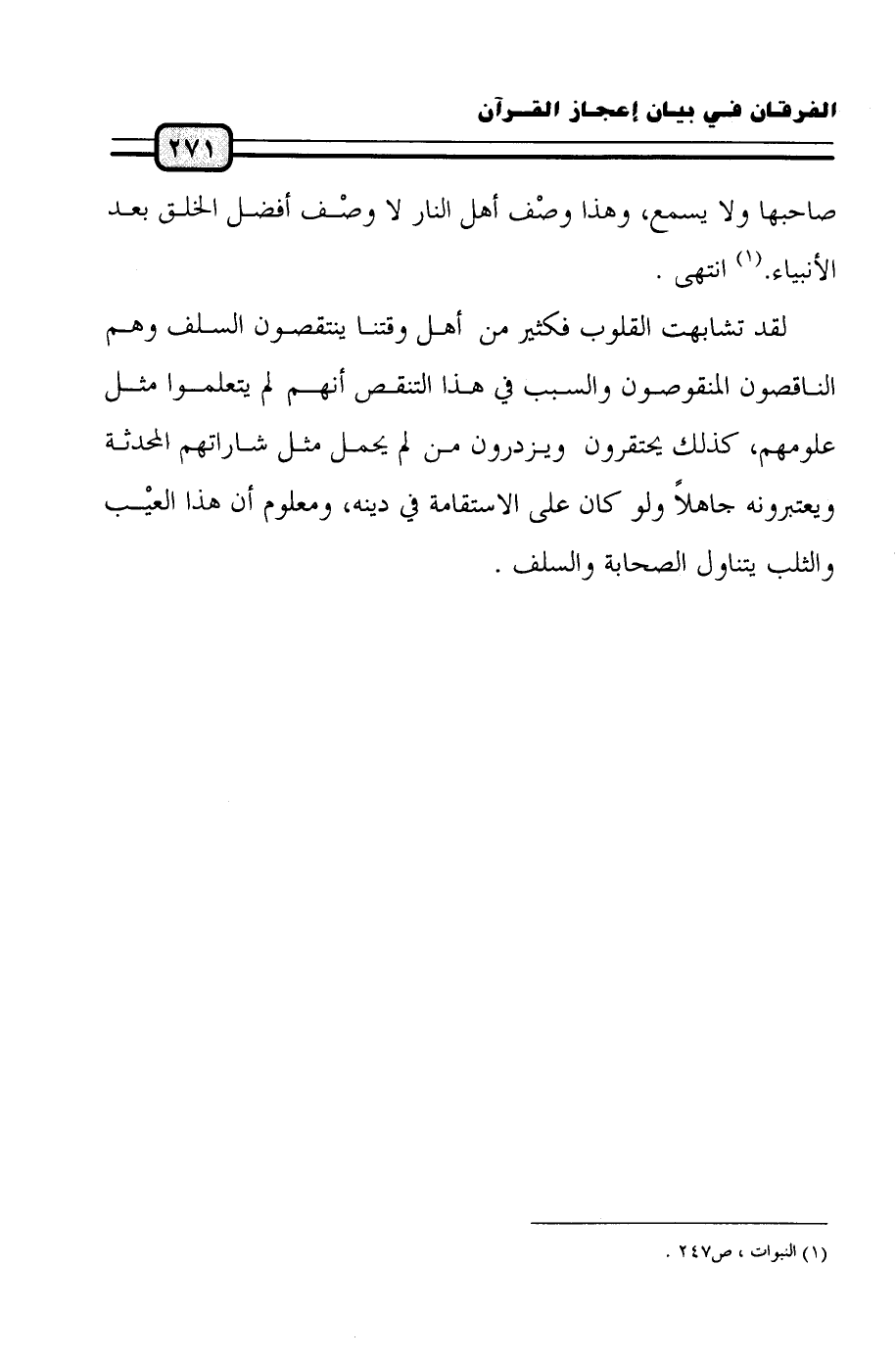 صاحبها ولا يسمع، وهذا وصْف أهل النار لا وصْف أفضل الخلق بعد الأنبياء (¬1). انتهى.