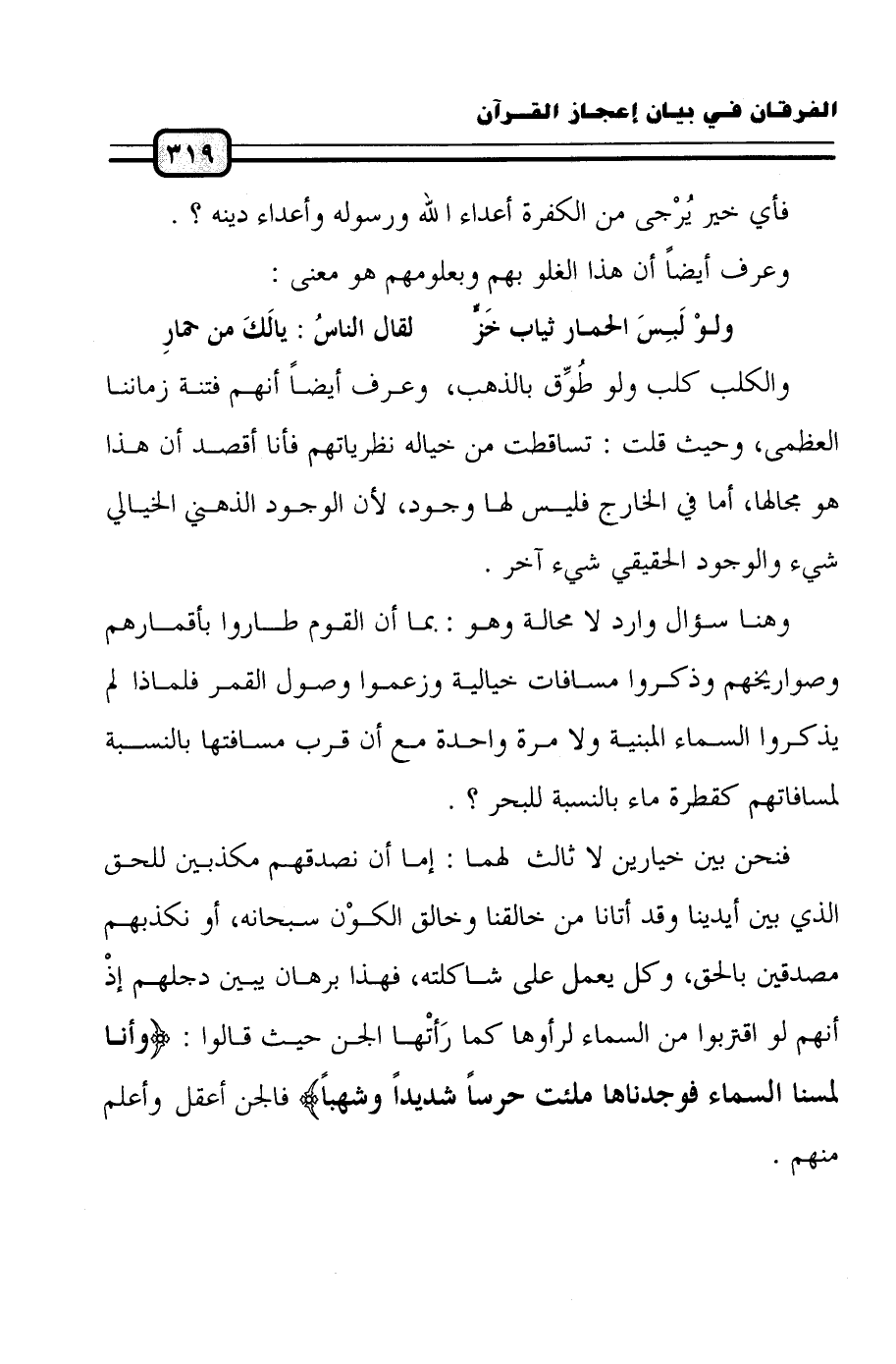 فنحن بين خيارين لا ثالث لهما: إما أن نصدقهم مكذبين للحق الذي بين أيدينا وقد أتانا من خالقنا وخالق الكون سبحانه، أو نكذبهم مصدقين بالحق، وكل يعمل على شاكلته، فهذا برهان يبين دجلهم إذْ أنهم لو اقتربوا من السماء لرأوها كما رَأتْها الجن حيث قالوا: (وَأَنَّا لَمَسْنَا السَّمَاءَ فَوَجَدْنَاهَا مُلِئَتْ حَرَساً شَدِيداً وَشُهُباً) فالجن أعقل وأعلم منهم.