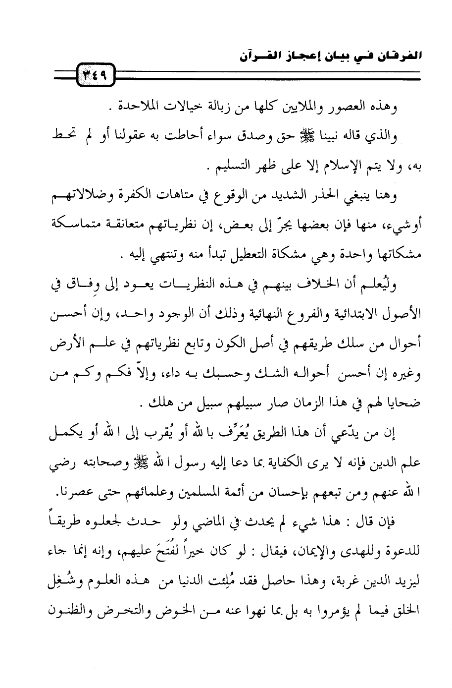 فإن قال: هذا شيء لم يحدث في الماضي ولو حدث لجعلوه طريقاً للدعوة وللهدى والإيمان، فيقال: لو كان خيراً لفُتِحَ عليهم، وإنه إنما جاء ليزيد الدين غربة، وهذا حاصل فقد مُلئِت الدنيا من هذه العلوم وشُغِل الخلق فيما لم يؤمروا به بل بما نهوا عنه من الخوض والتخرص والظنون