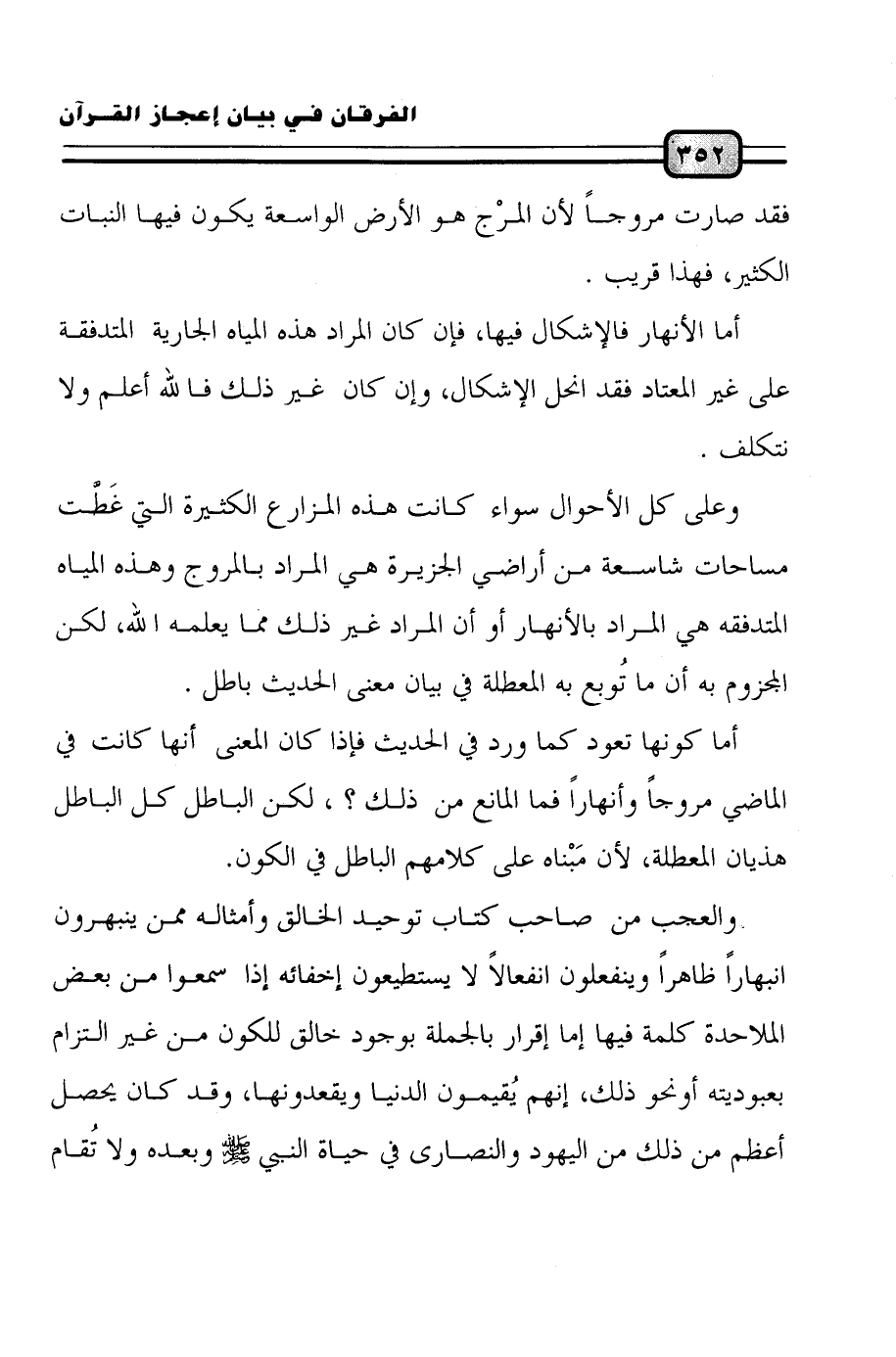 وعلى كل الأحوال سواء كانت هذه المزارع الكثيرة التي غَطَّت مساحات شاسعة من أراضي الجزيرة هي المراد بالمروج وهذه المياه المتدفقة هي المراد بالأنهار أو أن المراد غير ذلك مما يعلمه الله، لكن المجزوم به أن ما تُوبع به المعطلة في بيان معنى الحديث باطل.