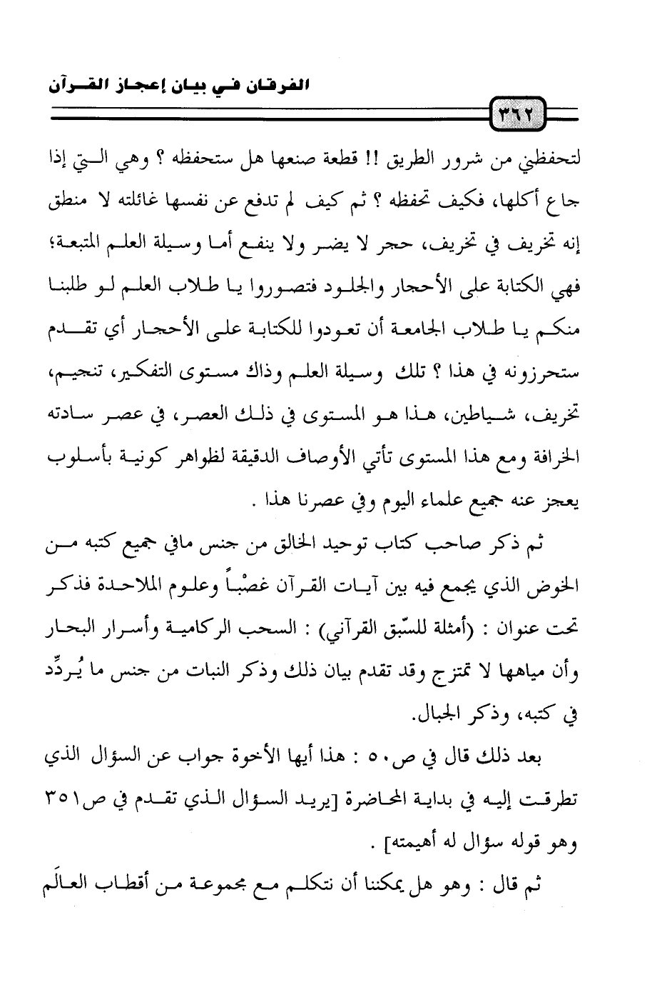 بعد ذلك قال في ص50: هذا أيها الأخوة جواب عن السؤال الذي تطرقت إليه في بداية المحاضرة (يريد السؤال الذي تقدم في ص293. وهو قوله سؤال له أهميته).