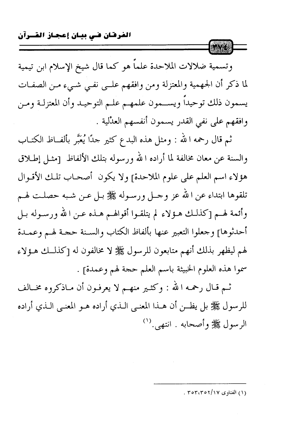 وتسمية ضلالات الملاحدة علماً هو كما قال شيخ الإسلام لبن تيمية لما ذكر أن الجهمية والمعتزلة ومن وافقهم على نفي شيء من الصفات يسمون ذلك توحيداً ويسمون علمهم علم التوحيد وأن المعتزلة ومن وافقهم على نفي القدر يسمون أنفسهم العدْلية.