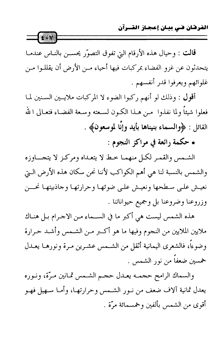 هذه الشمس ليست هي أكبر ما في السماء من الأجرام بل هناك ملايين الملايين من النجوم وفيها ما هو أكبر من الشمس وأشد حرارة وضوءاً فالشعرى اليمانية أثقل من الشمس عشرين مرة ونورها يعدل خمسين ضعفاً من نور الشمس.