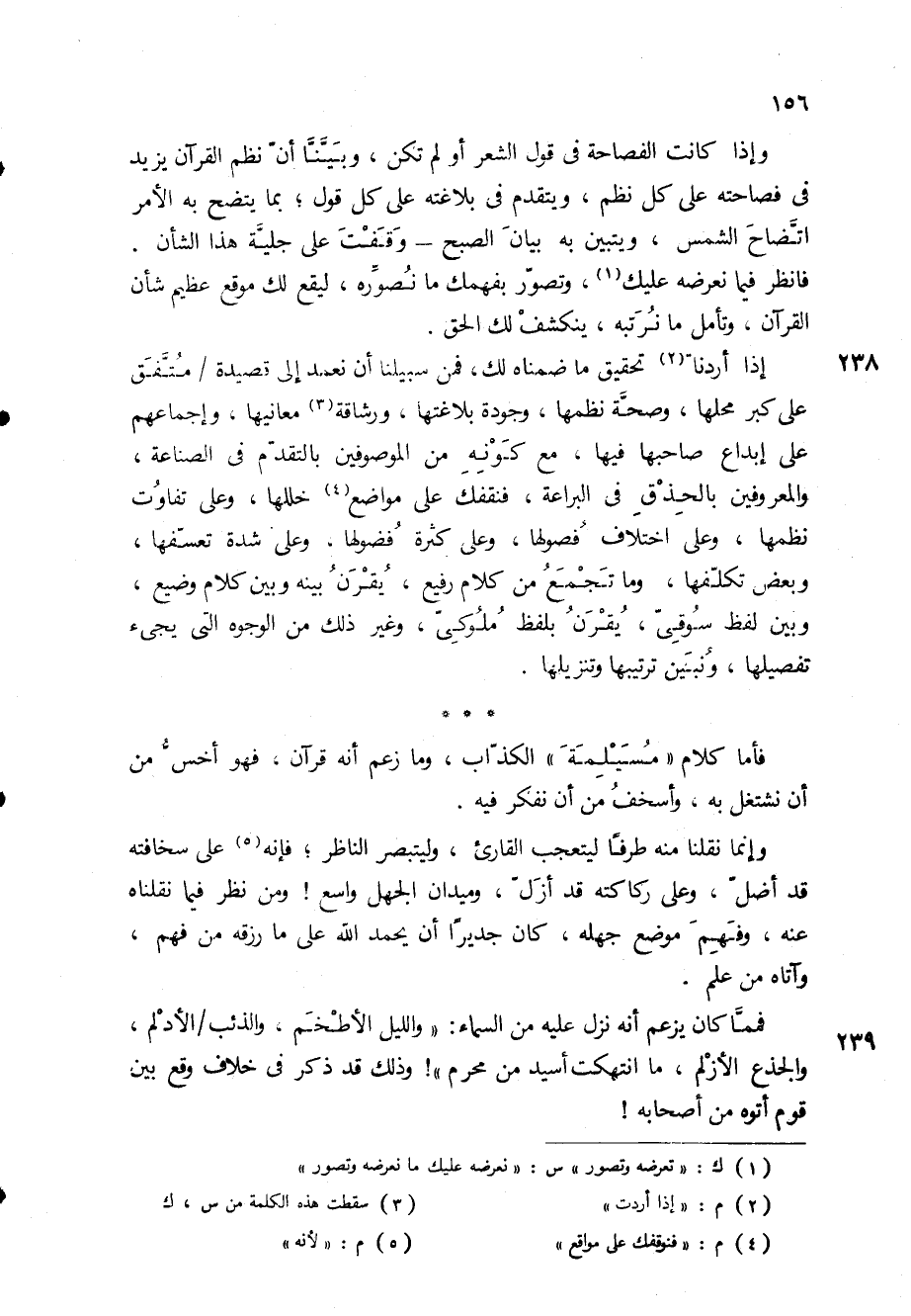 فأما كلام " مسيلمة " الكذاب، وما زعم أنه قرآن، فهو أخس من أن نشتغل به، وأسخف من أن نفكر فيه.
