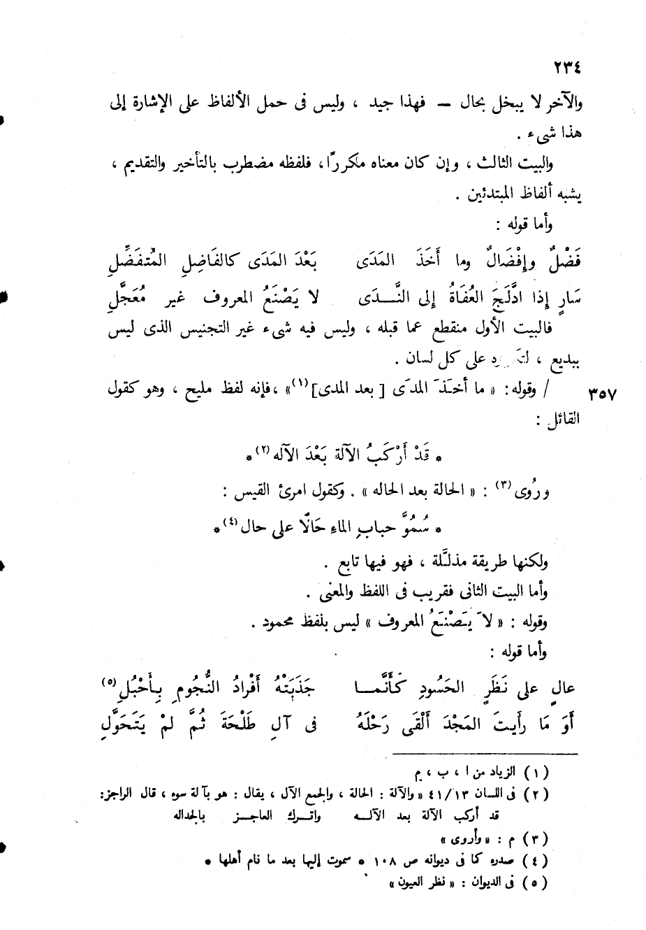 / وقوله: " ما أخذ المدى [بعد المدى] (1) "، فإنه لفظ مليح، وهو كقول القائل: * قد أركبُ الآلة بعد الآلة (2) * وروي (3) : " الحالة بعد الحالة ".