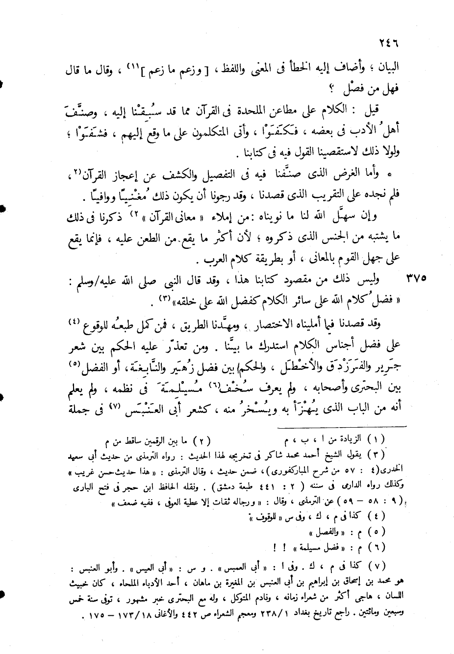 وليس ذلك من مقصود كتابنا هذا، وقد قال النبي صلى الله عليه / وسلم: " فضل كلام الله على سائر الكلام كفضل الله على خلقه " (3) .