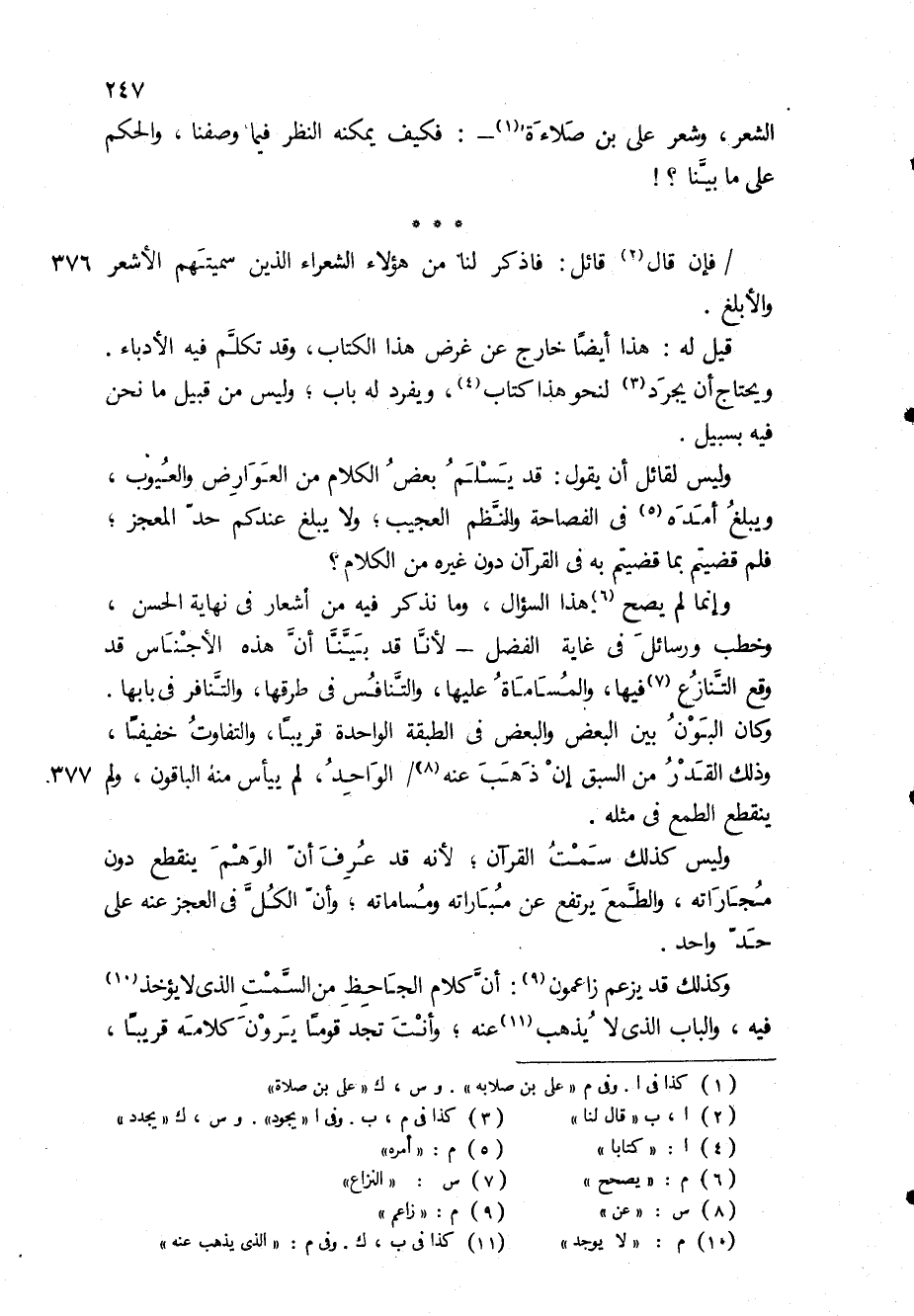 الشعر، وشعر على بن صلاءة (1) -: فكيف يمكنه النظر فيما وصفنا، والحكم على ما بينا؟ ! * * * / فإن قال (2) قائل: فاذكر لنا من هؤلاء الشعراء الذين سميتهم الأشعر والأبلغ.