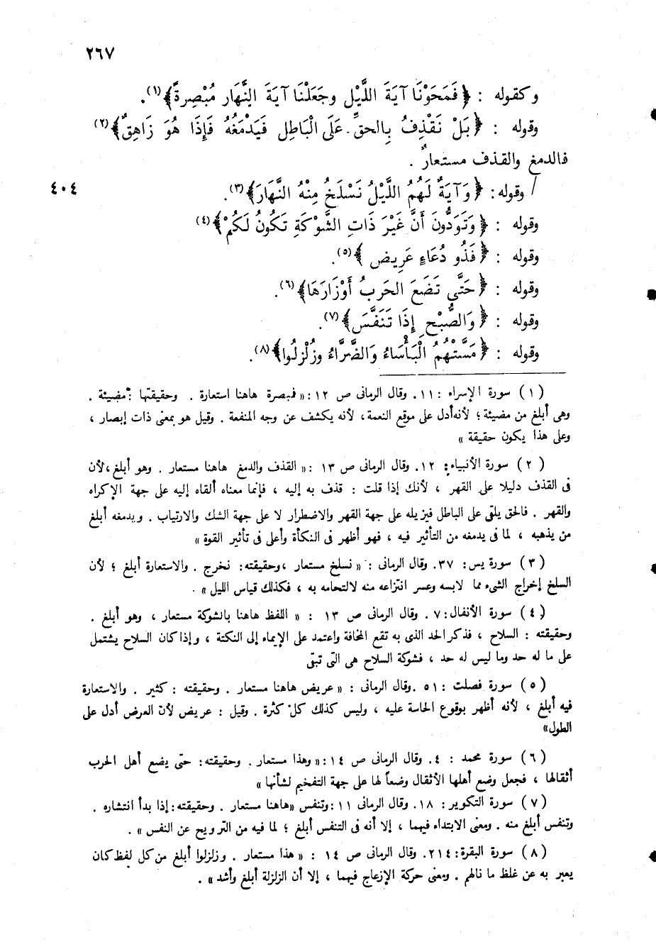 وقال الرماني ص 13: " اللفظ هاهنا بالشوكة مستعار، وهو أبلغ.
