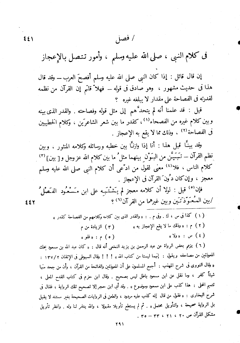 : " والقدر الذى بين كلامه وكلامهم من الفصاحة كقدر " (2) م: " وذلك م الا يقع الاعجاز به " (3) الزيادة من م " (4) س: " ولا " (5) م: " فلو " (6) يزعم بعض الرواة عن عبد الرحمن بن يزيد النخعي أنه قال: " كان عبد الله بن مسعود يحك المعوذتين من مصاحفه ويقول: إنهما ليستا من كتاب الله "! ! ! وقال السيوطي في الاتقان 2 / 137: " وقال النووي في شرح المهذب: أجمع المسلمون على أن المعوذتين والفاتحة من القرآن، وأن من جحد منها