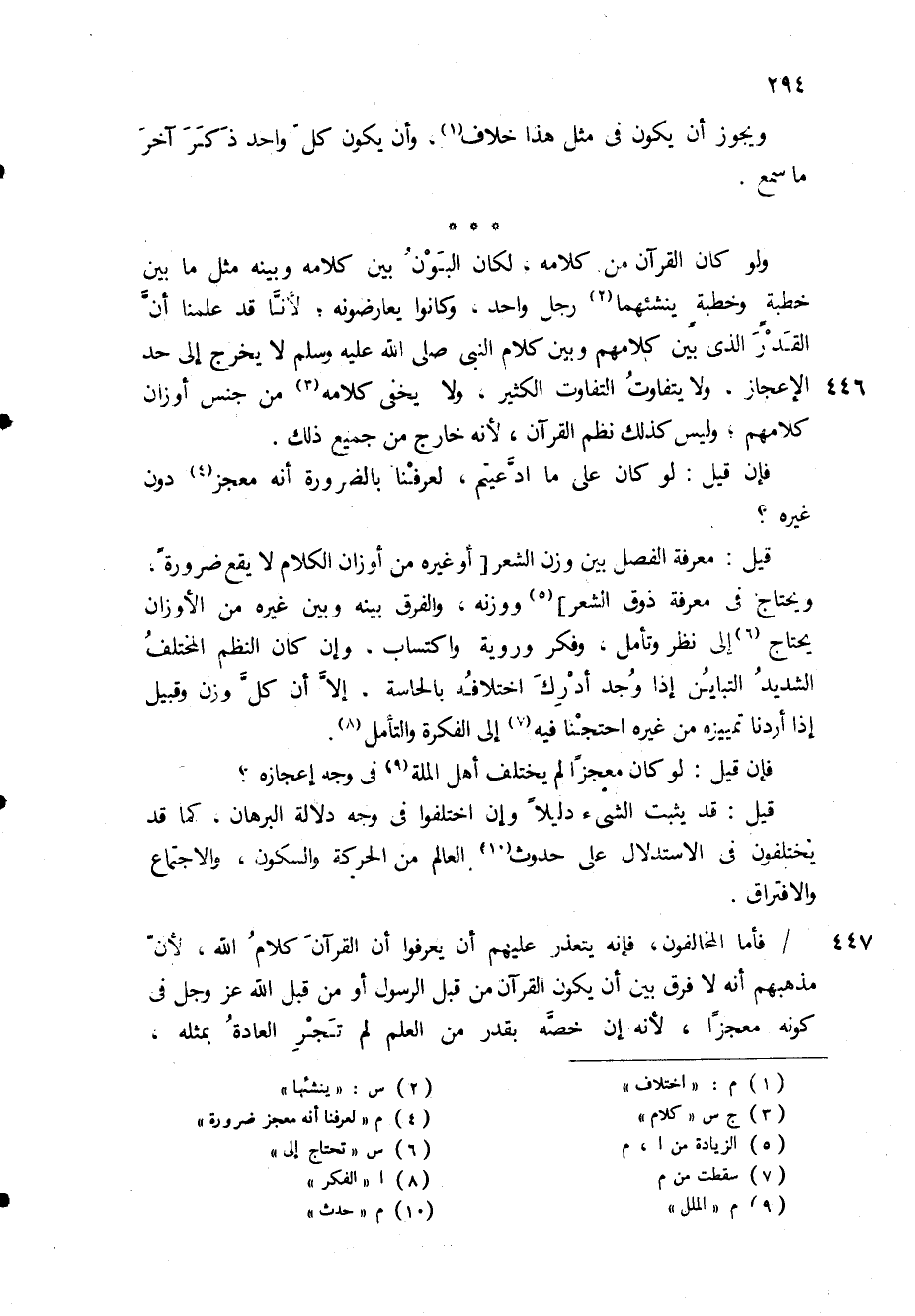 (1) م: " اختلاف " (2) س: " ينشئها " (3) ج س " كلام " (4) م " لعرفنا أنه معجز ضرورة " (5) الزيادة من ا، م (6) س " تحتاج إلى " (7) سقطت من م (8) ا: " الفكر " (9) م " الملل " (10) م " حدث " (*)