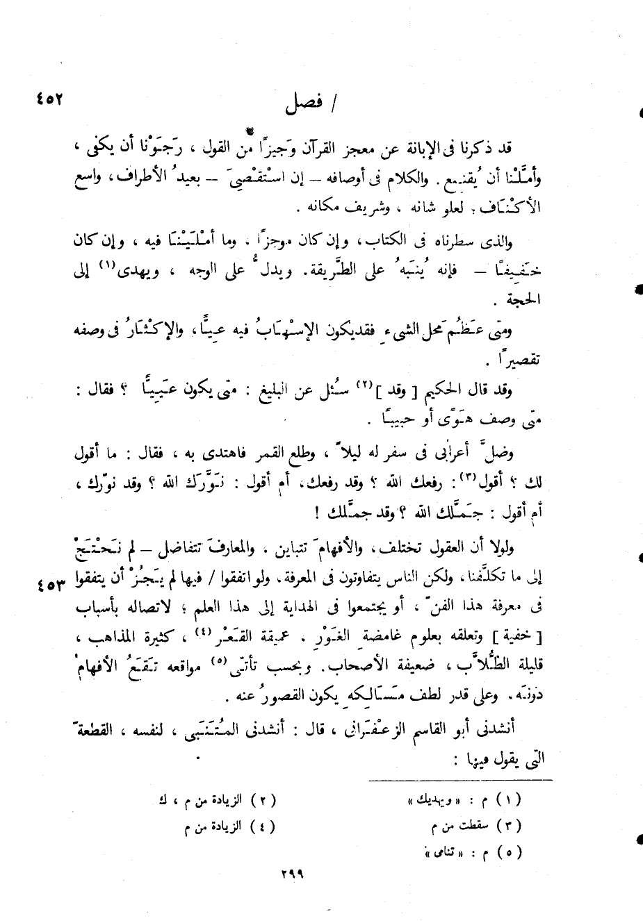 وضل أعرابي في سفر له ليلاً، وطلع القمر فاهتدى به، فقال: ما أقول لك؟ أقول (3) : رفعك الله؟ وقد رفعك، أم أقول: نورك الله؟ وقد نورك، أم أقول: جملك الله؟ وقد جملك! ولولا أن العقول تختلف، والأفهام تتباين، والمعارف تتفاضل - لم نحتج إلى ما تكلفنا، ولكن الناس يتفاوتون في المعرفة، ولو اتفقوا / فيها لم يجز أن يتفقوا في معرفة هذا الفن، أو يجتمعوا في الهداية إلى هذا العلم، لاتصاله بأسباب [خفية] وتعلقه بعلوم غامضة الغور، عميقة القعر (4) ، كثيرة المذاهب، قليلة الطلاب، ضعيفة الأصحاب، وبحسب تأتي (5) مواقعه تقع الإفهام دونه، وعلى قدر لطف مسالكه يكون القصور عنه.