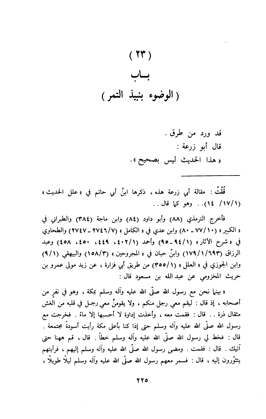 بَاب (الْوضُوء بنبيذ التَّمْر)