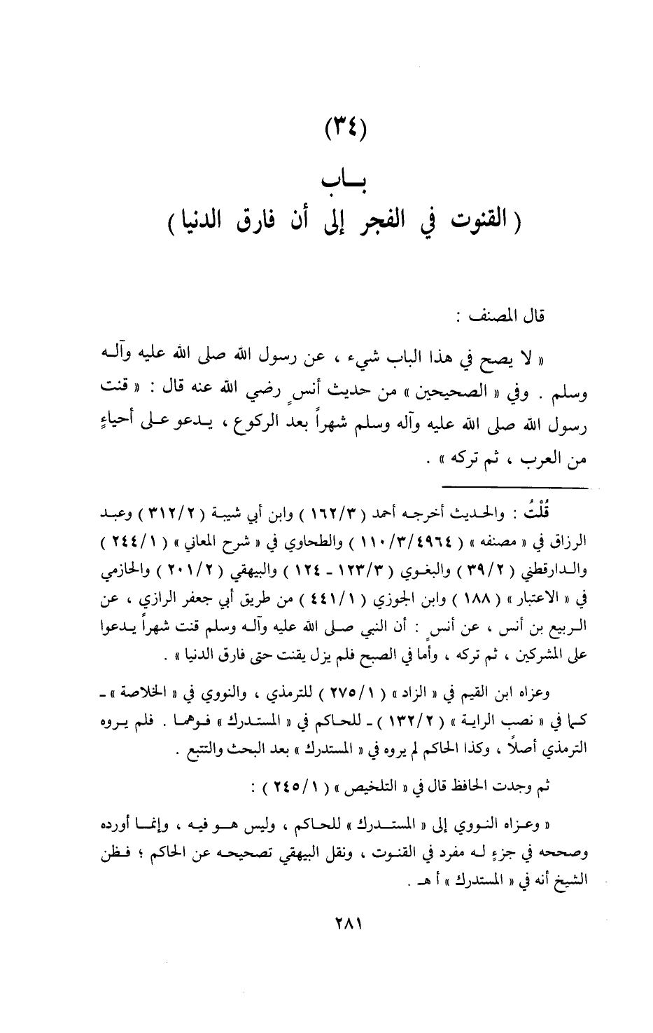 (34) بَاب (الْقُنُوت فِي الْفجْر إِلَى أَن فَارق الدُّنْيَا)