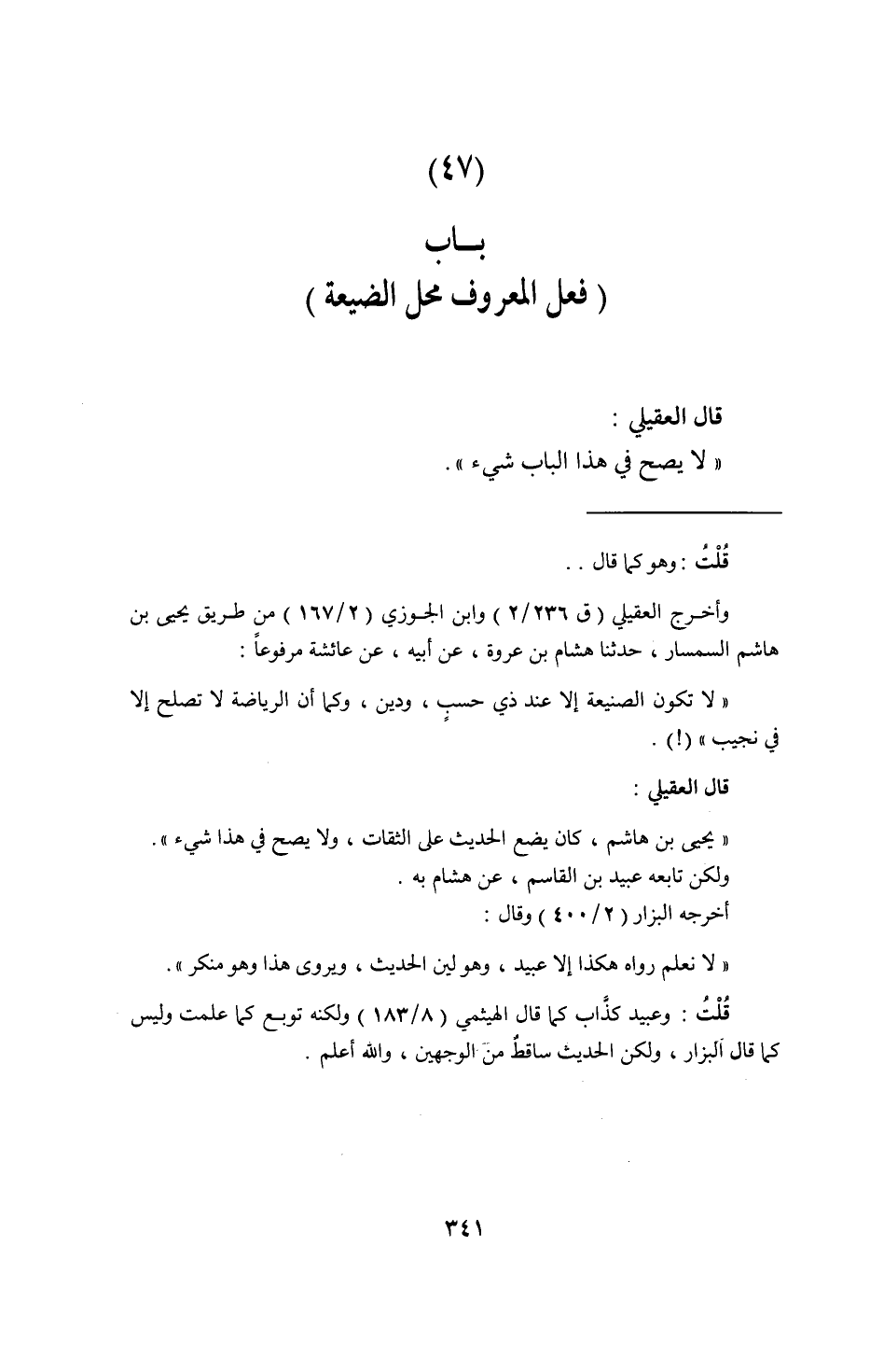 (47) بَاب (فعل الْمَعْرُوف مَحل الضَّيْعَة)