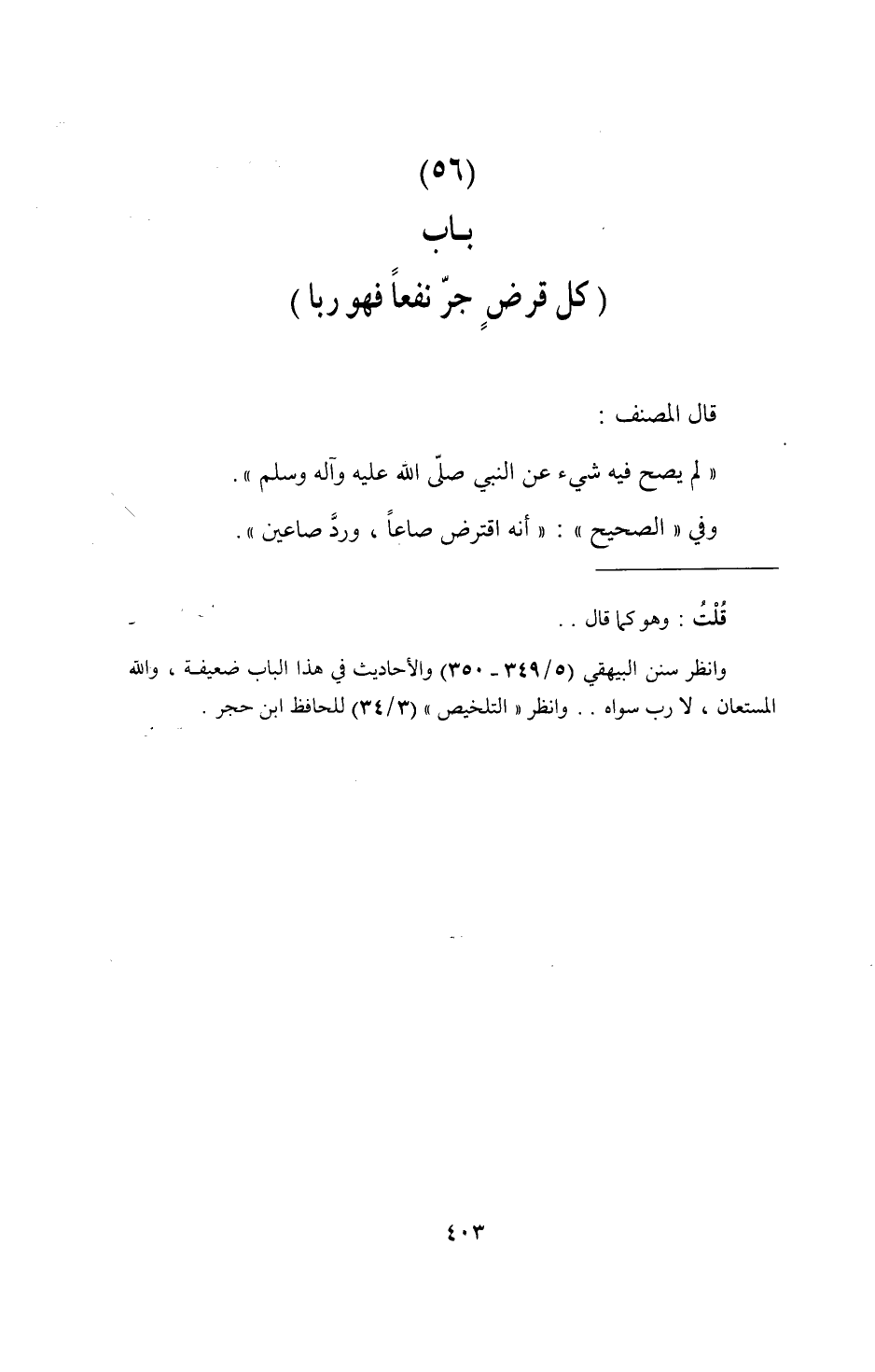 (56) بَاب كل قرض جر نفعا فَهُوَ رَبًّا)