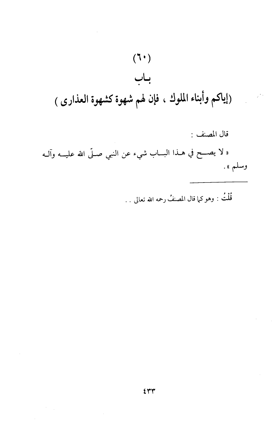 (60) (إيَّاكُمْ وَأَبْنَاء الْمُلُوك، فَإِن لَهُم شَهْوَة كشهوة العذارى)