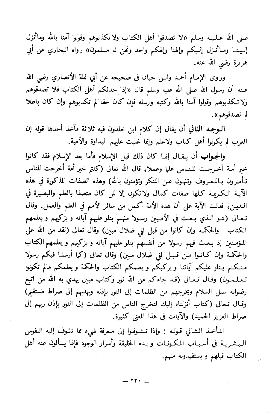 الوجه الثاني أن يقال إن كلام ابن خلدون فيه ثلاثة مآخذ أحدها قوله إن العرب لم يكونوا أهل كتاب ولا علم وإنما غلبت عليهم البداوة والأمية.