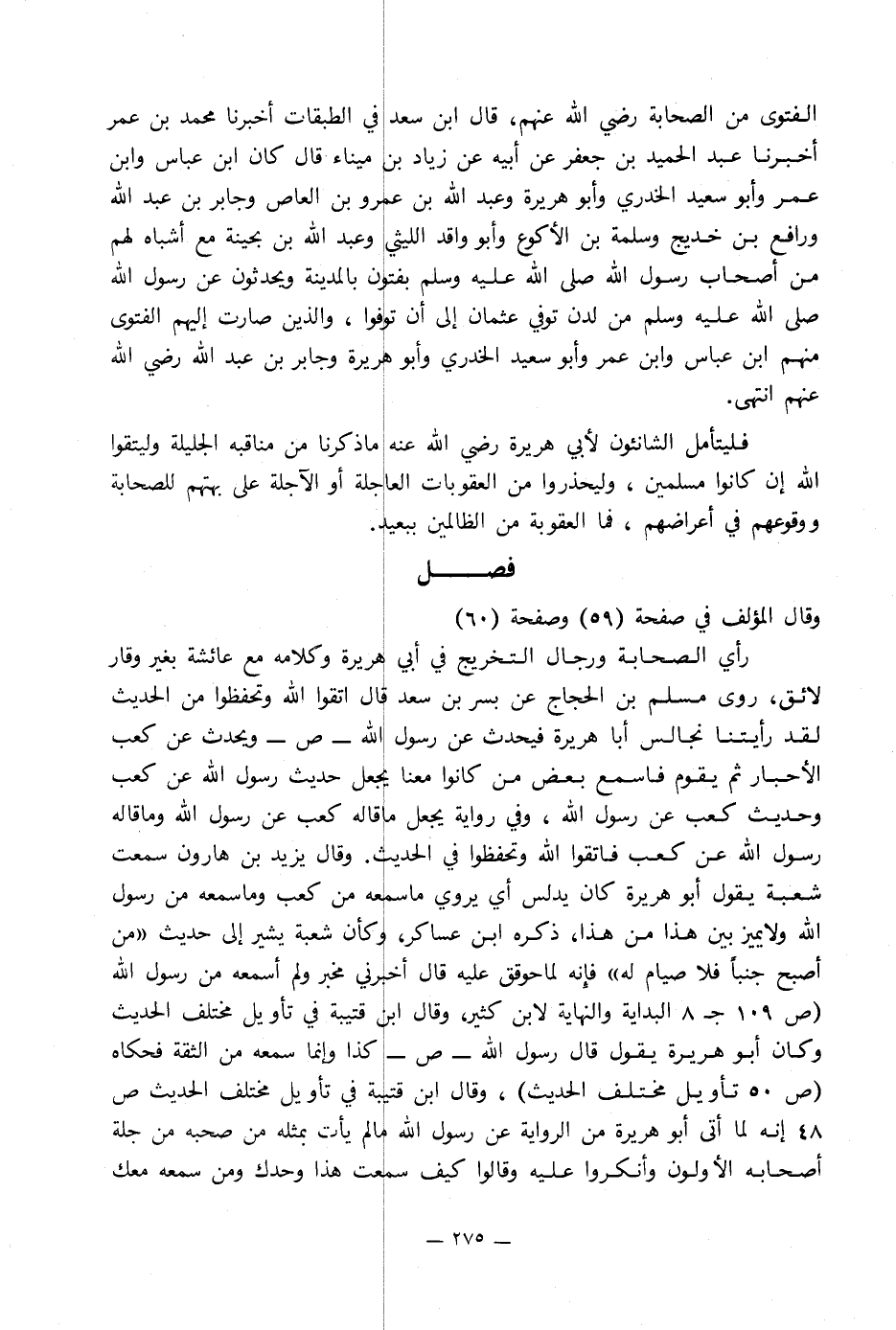 فليتأمل الشانئون لأبي هريرة رضي الله عنه ما ذكرنا من مناقبه الجليلة وليتقوا الله إن كانوا مسلمين, وليحذروا من العقوبات العاجلة أو الآجلة على بهتهم للصحابة ووقوعهم في أعراضهم, فما العقوبة من الظالمين ببعيد.
