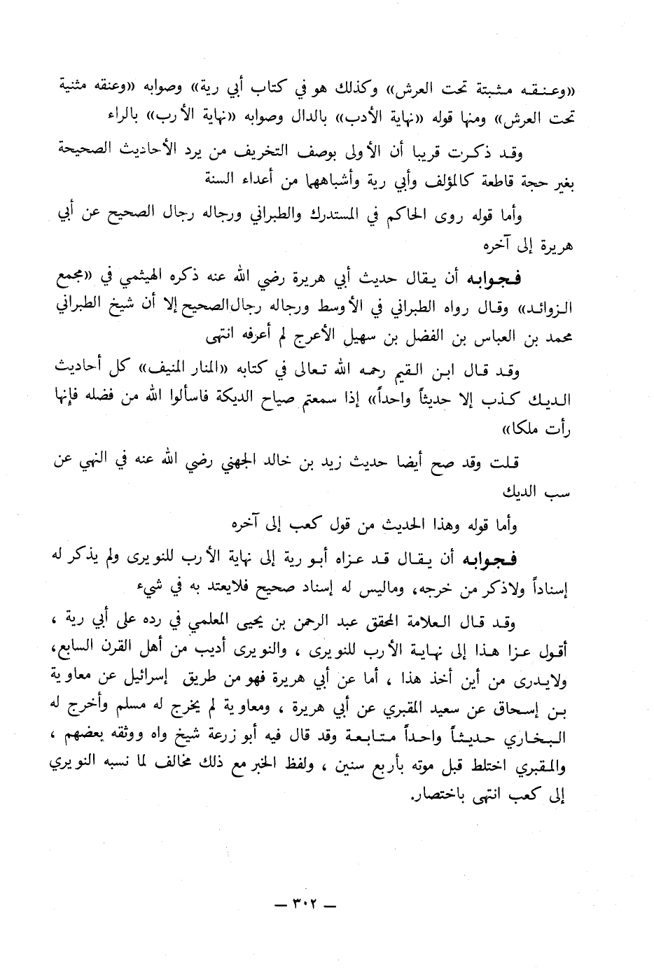 «وعنقه مثبتة تحت العرش» وكذلك هو في كتاب أبي رية» وصوابه «وعنقه مثنية تحت العرش» ومنها قوله «نهاية الأدب» بالدال وصوابه «نهاية الأرب» بالراء.