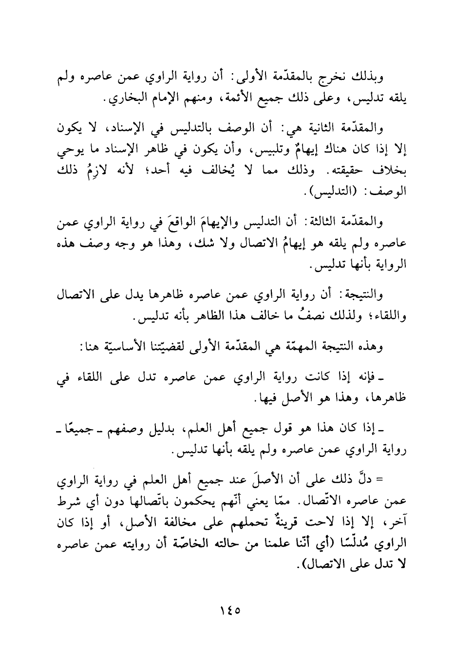 وبذلك نخرج بالمقدّمة الأولى: أن رواية الراوي عمن عاصره ولم يلقه تدليس، وعلى ذلك جميع الأئمة، ومنهم الإمام البخاري.