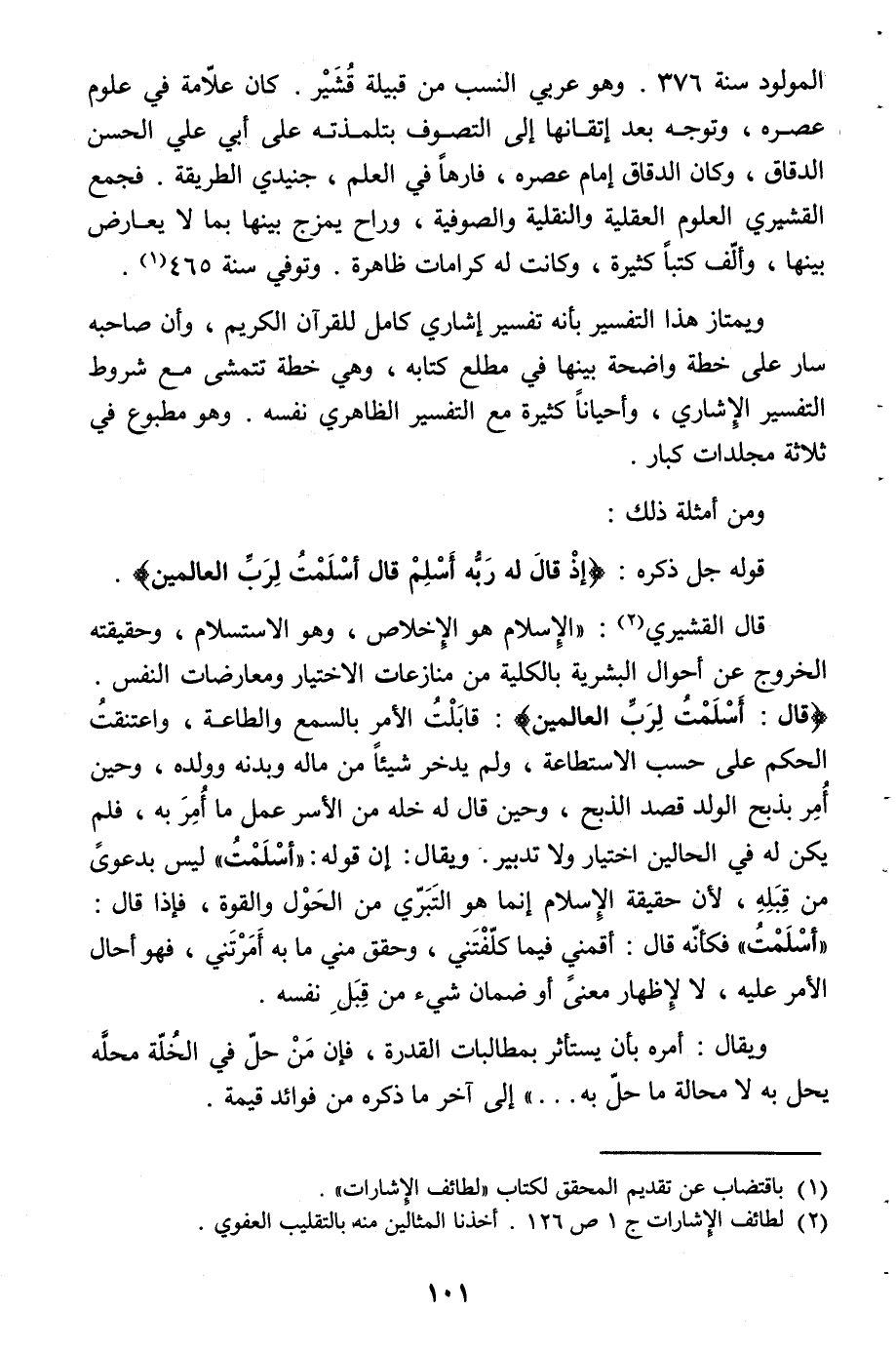 (¬1) باقتضاب عن تقديم المحقق لكتاب «لطائف الإشارات».