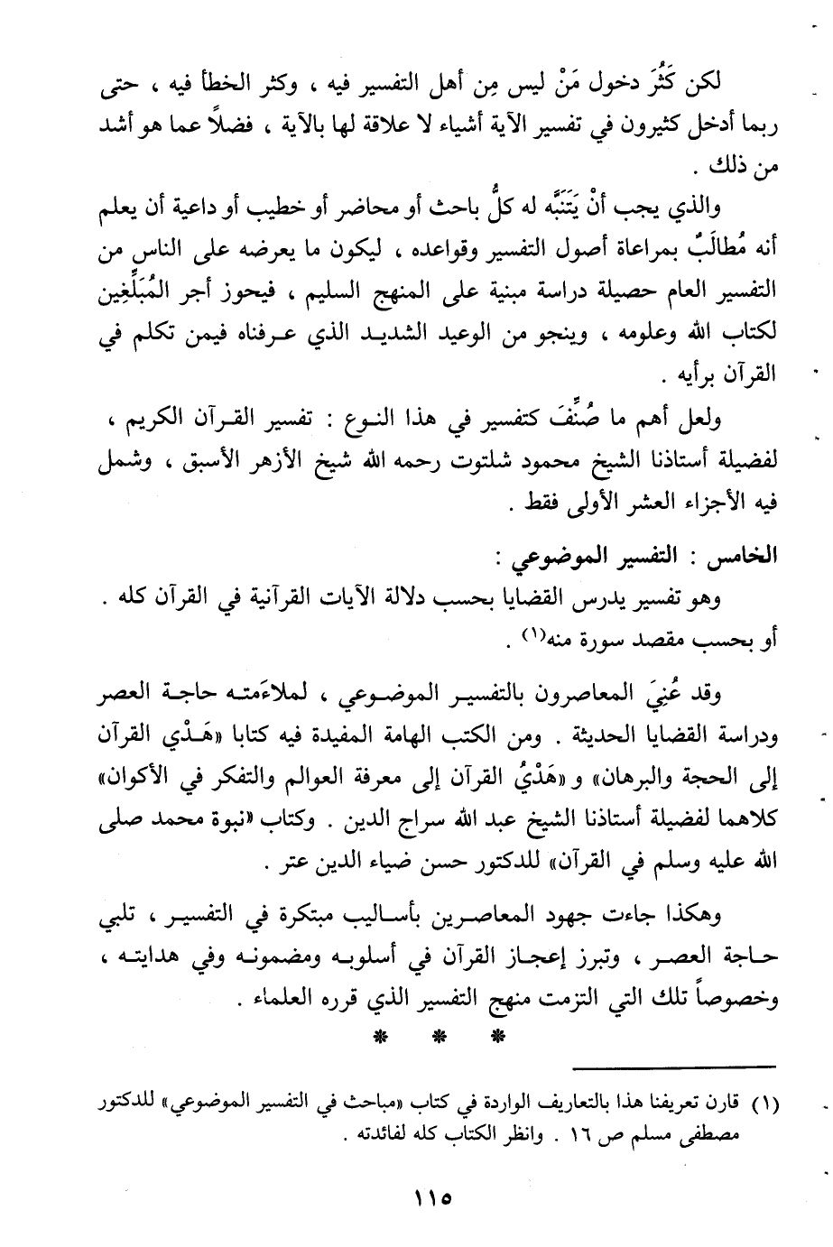 (¬1) قارن تعريفنا هذا بالتعاريف الواردة في كتاب «مباحث في التفسير الموضوعي» للدكتور مصطفى مسلم ص 16. وانظر الكتاب كله لفائدته.