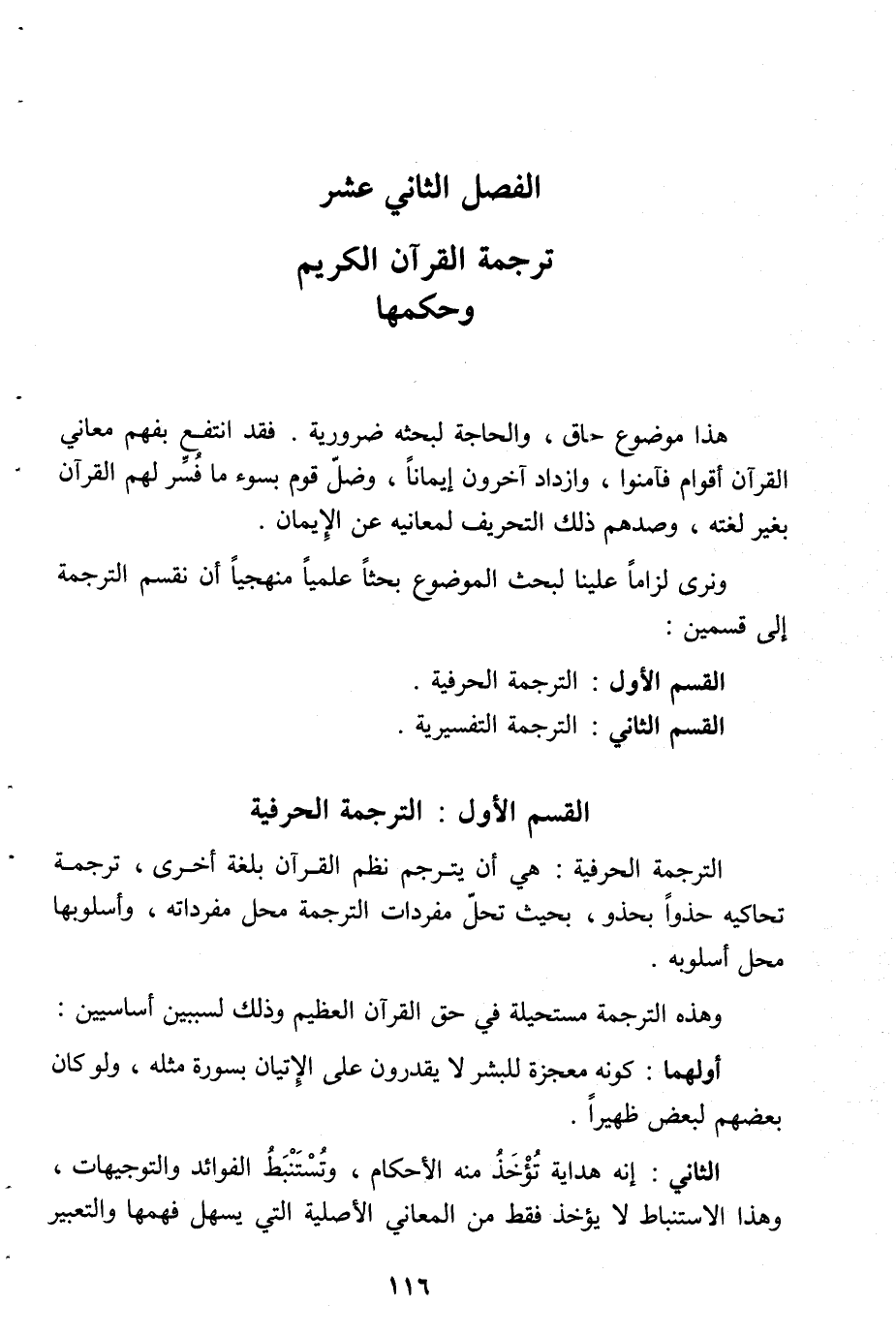 الفصل الثاني عشر ترجمة القرآن الكريم وحكمها
