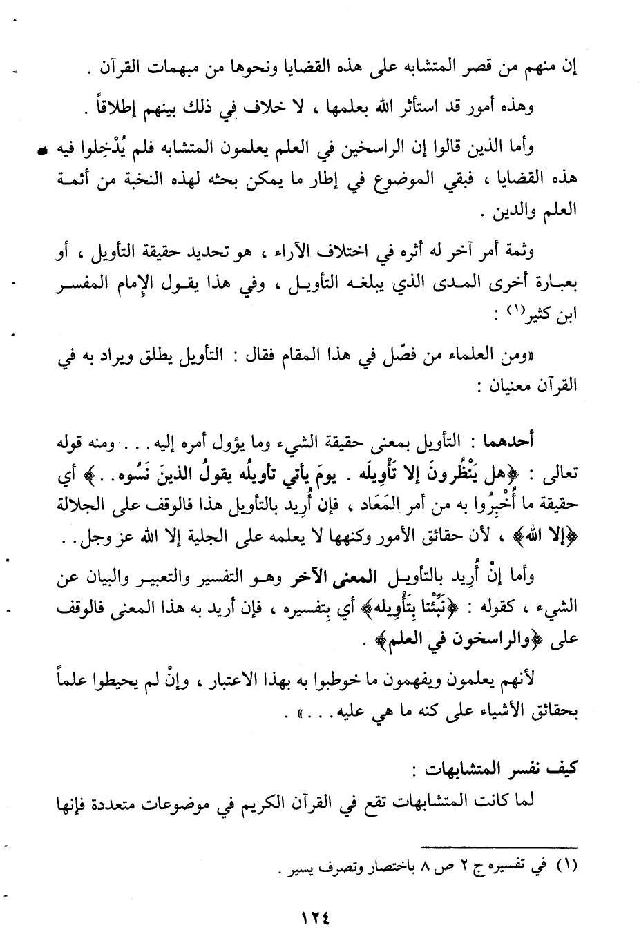 «ومن العلماء من فصّل في هذا المقام فقال: التأويل يطلق ويراد به في القرآن معنيان: