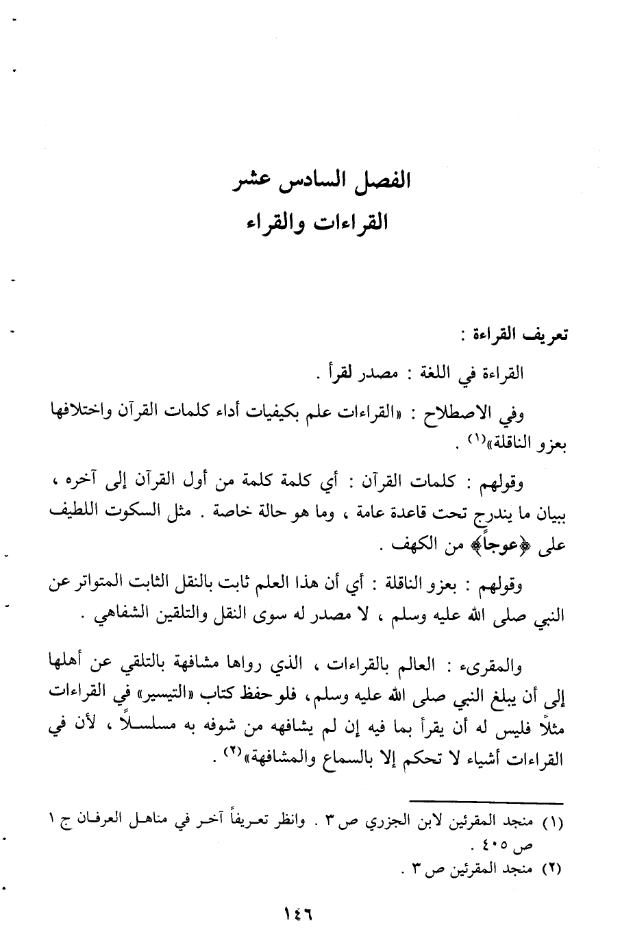 (¬1) منجد المقرئين لابن الجزري ص 3. وانظر تعريفا آخر في مناهل العرفان ج 1 ص 405.