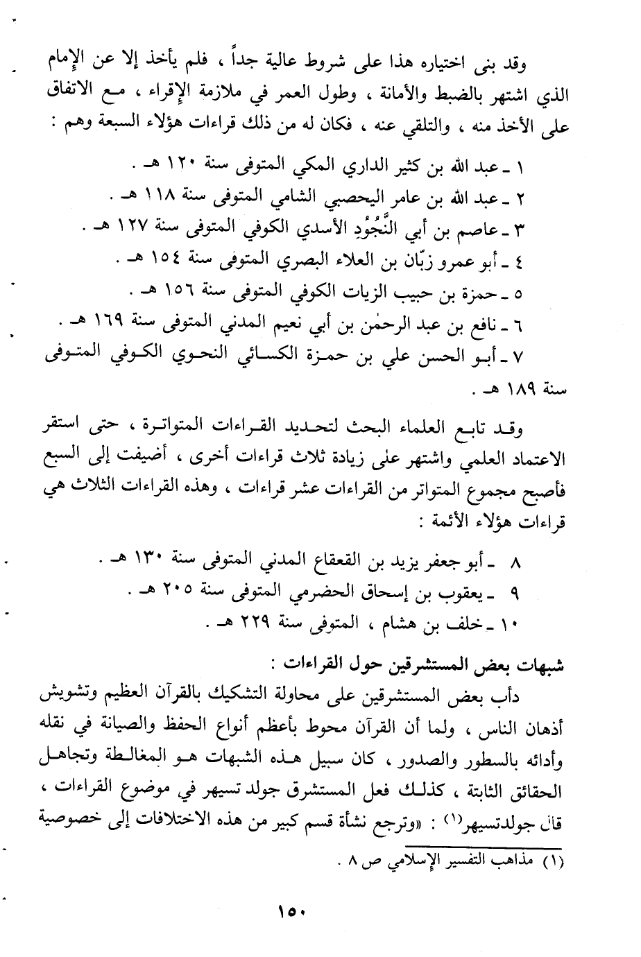 دأب بعض المستشرقين على محاولة التشكيك بالقرآن العظيم وتشويش أذهان الناس، ولما أن القرآن محوط بأعظم أنواع الحفظ والصيانة في نقله وأدائه بالسطور والصدور، كان سبيل هذه الشبهات هو المغالطة وتجاهل الحقائق الثابتة، كذلك فعل المستشرق جولد تسيهر في موضوع القراءات، قال جولد تسيهر (¬1): «وترجع نشأة قسم كبير من هذه الاختلافات إلى خصوصية