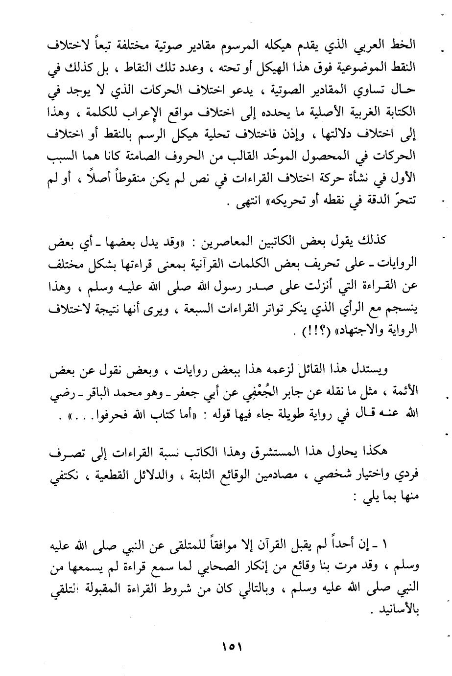 هكذا يحاول هذا المستشرق وهذا الكاتب نسبة القراءات إلى تصرف فردي واختيار شخصي، مصادمين الوقائع الثابتة، والدلائل القطعية، نكتفي منها بما يلي: