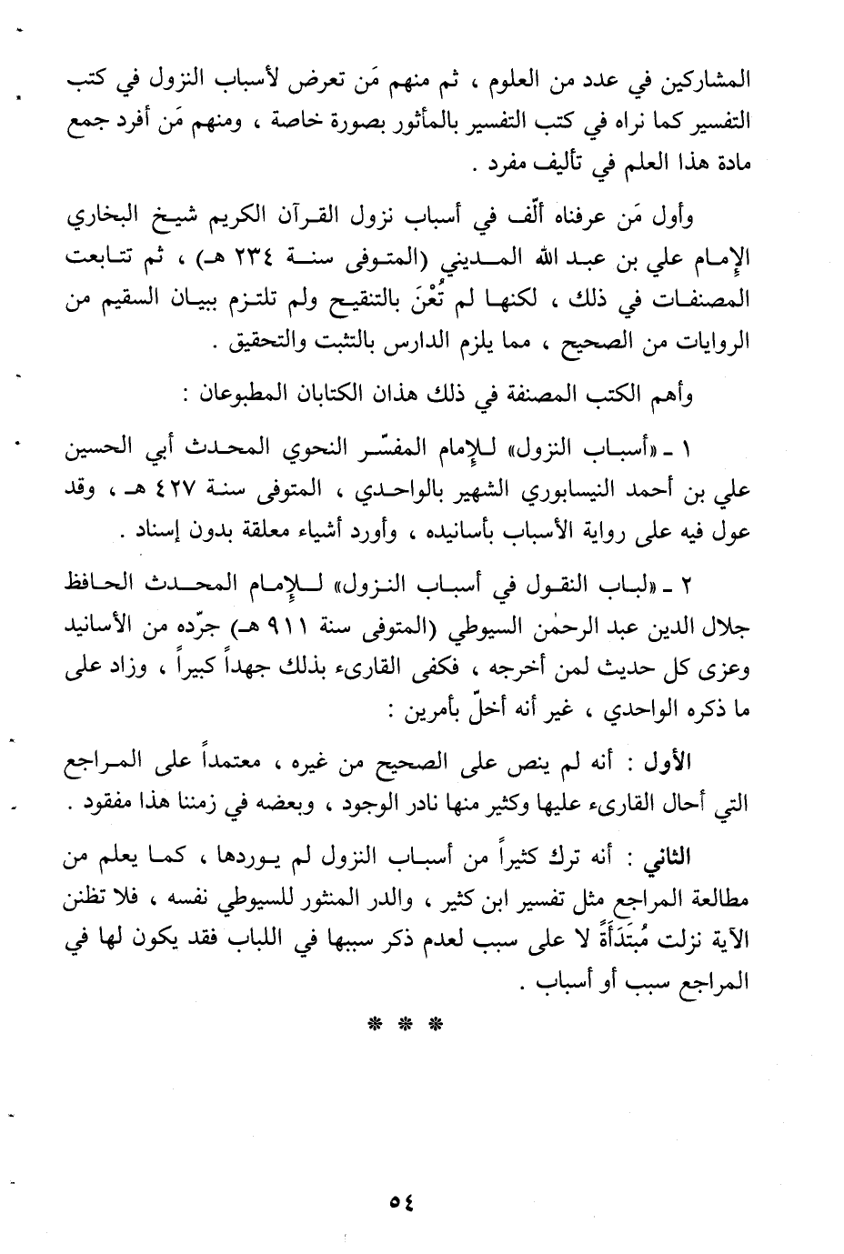 الثاني: أنه ترك كثيرا من أسباب النزول لم يوردها، كما يعلم من مطالعة المراجع مثل تفسير ابن كثير، والدر المنثور للسيوطي نفسه، فلا تظنن الآية نزلت مبتدأة لا على سبب لعدم ذكر سببها في اللباب فقد يكون لها في المراجع سبب أو أسباب.