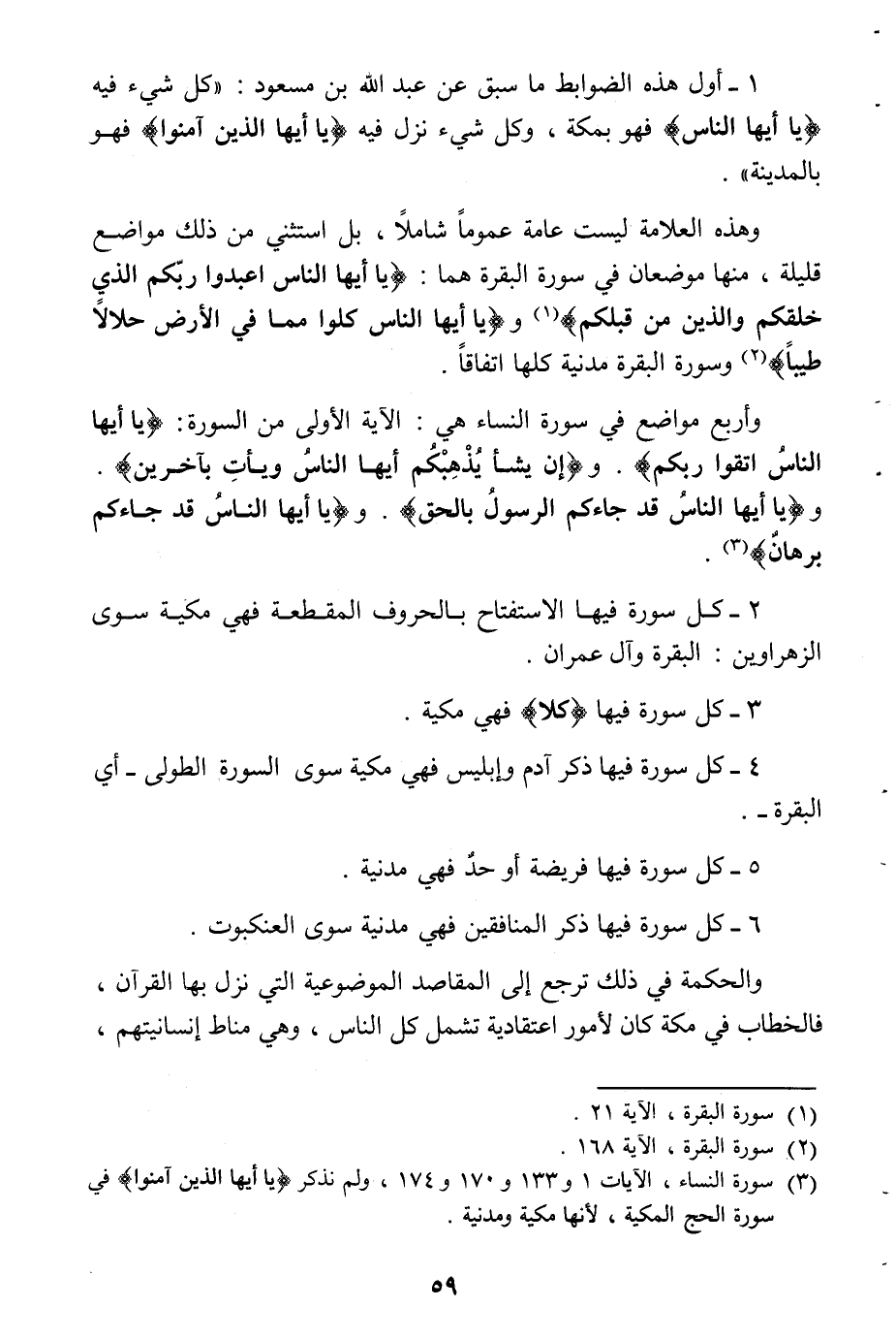 وهذه العلامة ليست عامة عموما شاملا، بل استثني من ذلك مواضع قليلة، منها موضعان في سورة البقرة هما: يا أَيُّهَا النَّاسُ اعْبُدُوا رَبَّكُمُ الَّذِي خَلَقَكُمْ وَالَّذِينَ مِنْ قَبْلِكُمْ (¬1) ويا أَيُّهَا النَّاسُ كُلُوا مِمَّا فِي الْأَرْضِ حَلالًا طَيِّباً (¬2) وسورة البقرة مدنية كلها اتفاقا.