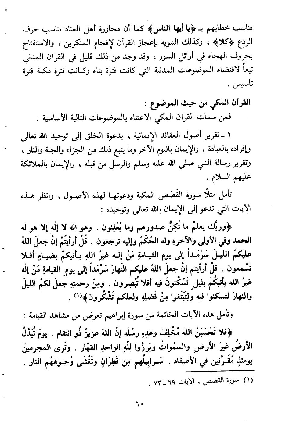 تأمل مثلا سورة القصص المكية ودعوتها لهذه الأصول، وانظر هذه الآيات التي تدعو إلى الإيمان بالله تعالى وتوحيده: