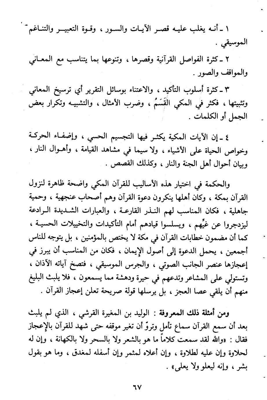 1 - أنه يغلب عليه قصر الآيات والسور، وقوة التعبير والتناغم الموسيقى.