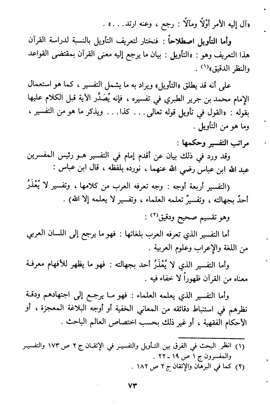 (¬1) انظر البحث في الفرق بين التأويل والتفسير في الإتقان ج 2 ص 173 والتفسير والمفسرون ج 1 ص 19 - 22.