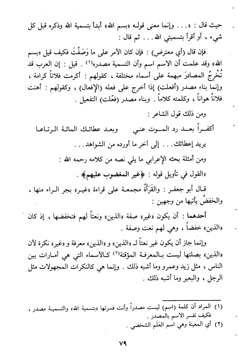 (¬1) المراد أن كلمة (اسم) ليست مصدرا وأنت فسرتها «بتسمية الله» والتسمية مصدر، فكيف تفسر الاسم بالمصدر.