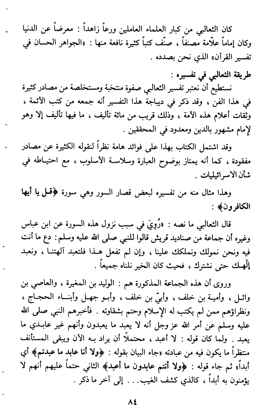 وهذا مثال منه من تفسيره لبعض قصار السور وهي سورة قُلْ يا أَيُّهَا الْكافِرُونَ.