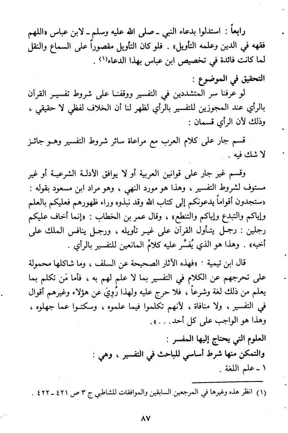 لو عرفنا سر المتشددين في التفسير ووقفنا على شروط تفسير القرآن بالرأي عند المجوزين للتفسير بالرأي لظهر لنا أن الخلاف لفظي لا حقيقي، وذلك لأن الرأي قسمان:
