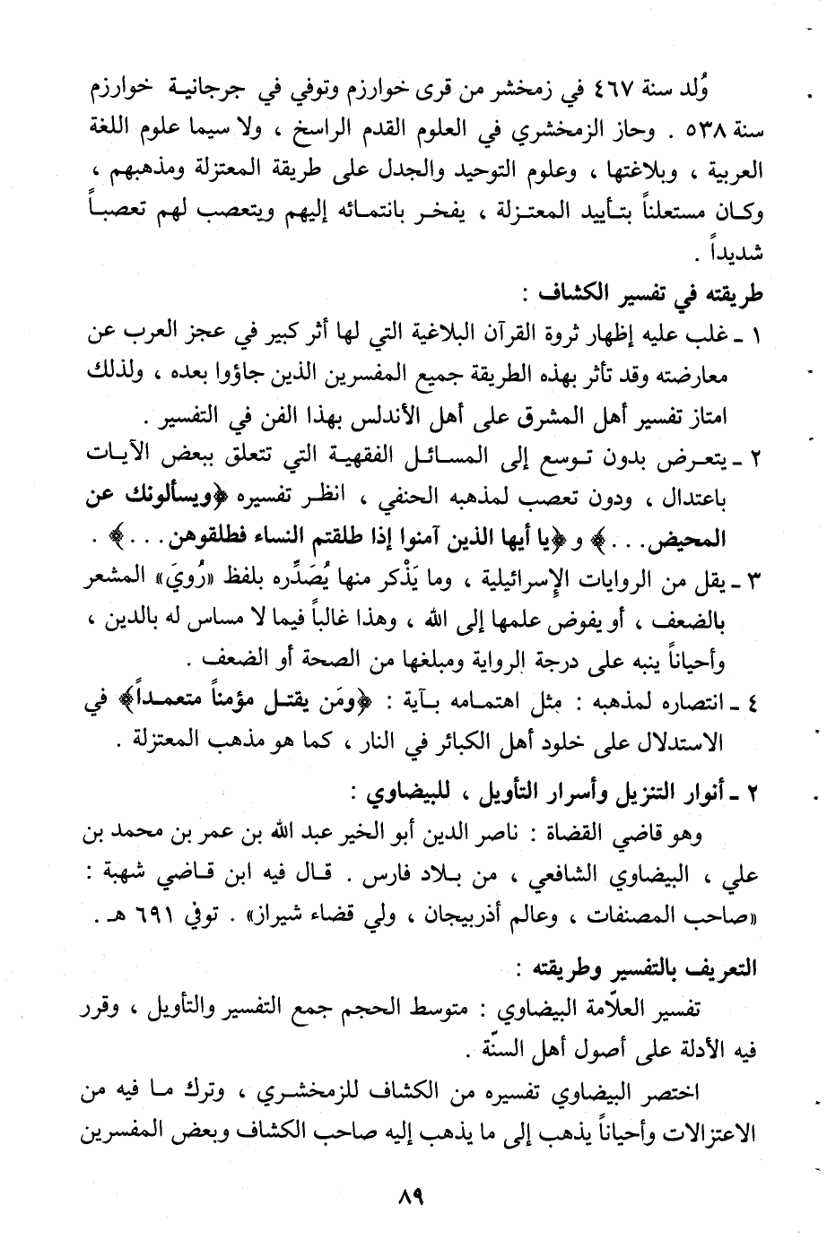 تفسير العلّامة البيضاوي: متوسط الحجم جمع التفسير والتأويل، وقرر فيه الأدلة على أصول أهل السنّة.