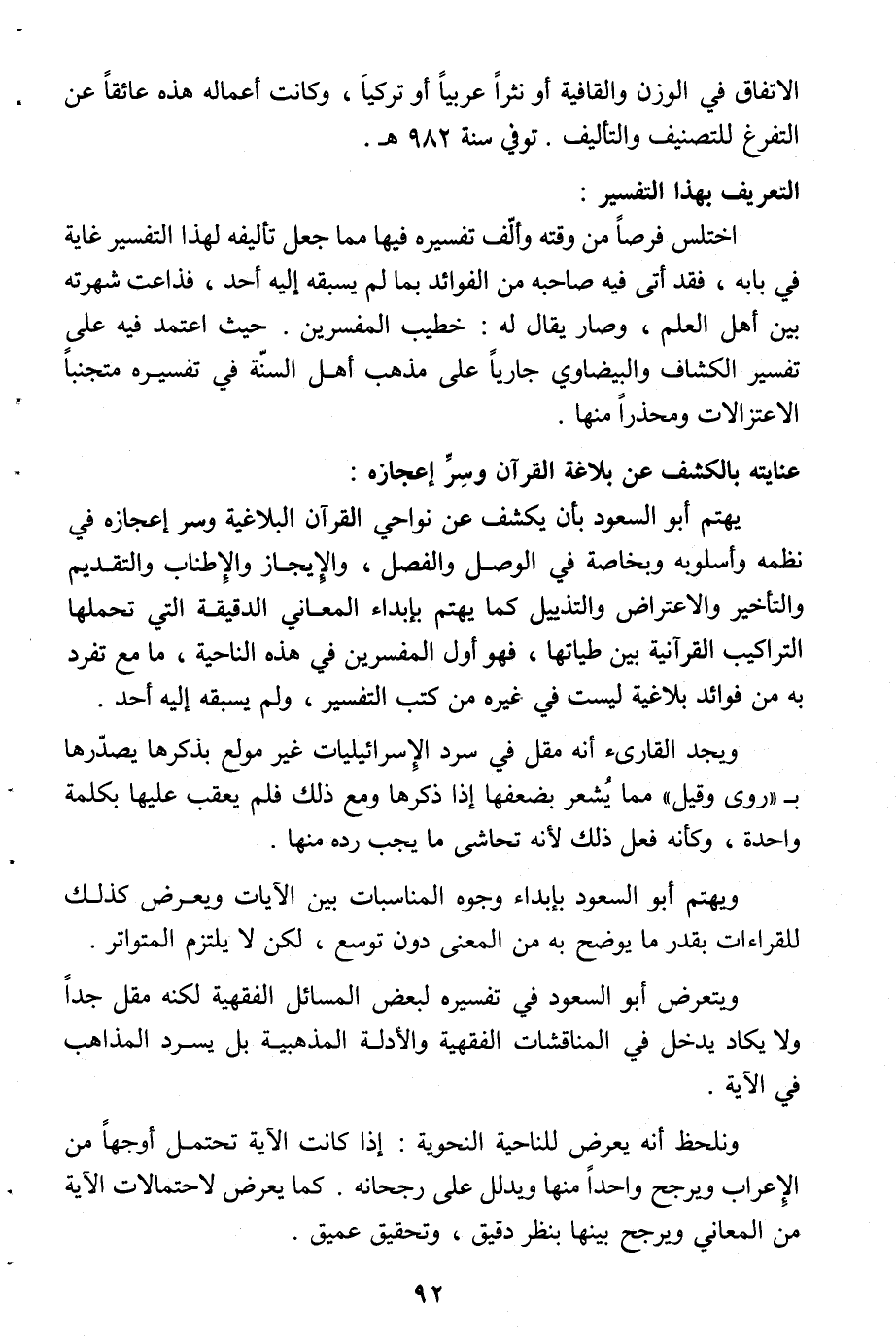ويهتم أبو السعود بإبداء وجوه المناسبات بين الآيات ويعرض كذلك للقراءات بقدر ما يوضح به من المعنى دون توسع، لكن لا يلتزم المتواتر.
