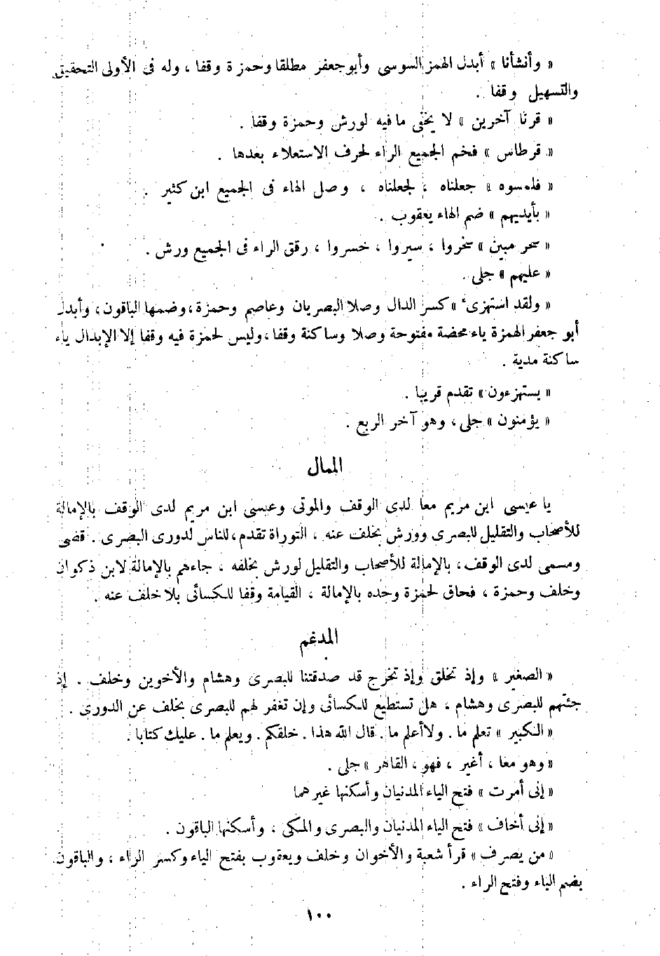 يا عيسى ابن مريم معا لدى الوقف، والموتى وعيسى ابن مريم لدى الوقف بالإمالة للأصحاب والتقليل للبصري وورش بخلف عنه، التوراة تقدم، للناس لدوري البصري. قضى ومسمى لدى الوقف، بالإمالة للأصحاب والتقليل لورش بخلفه، جاءهم بالإمالة لابن ذكوان وخلف وحمزة، فحاق لحمزة وحده بالإمالة، القيامة وقفا للكسائي بلا خلف عنه.