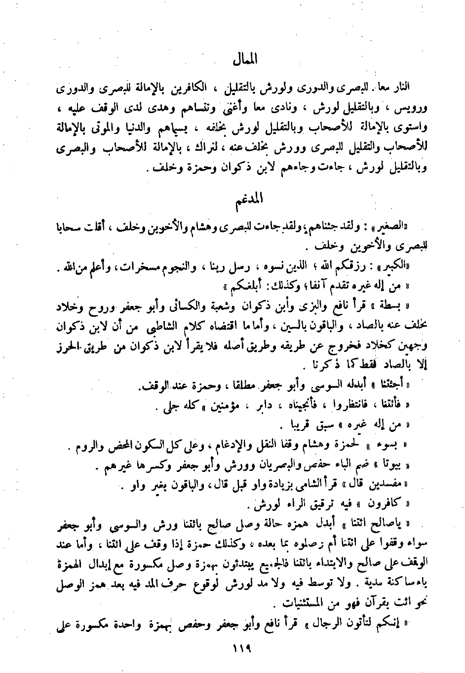 " الصغير " " ولقد جئناهم، ولقد جاءت للبصري وهشام والأخوين وخلف، أقلت سحابا للبصري والأخوين وخلف.