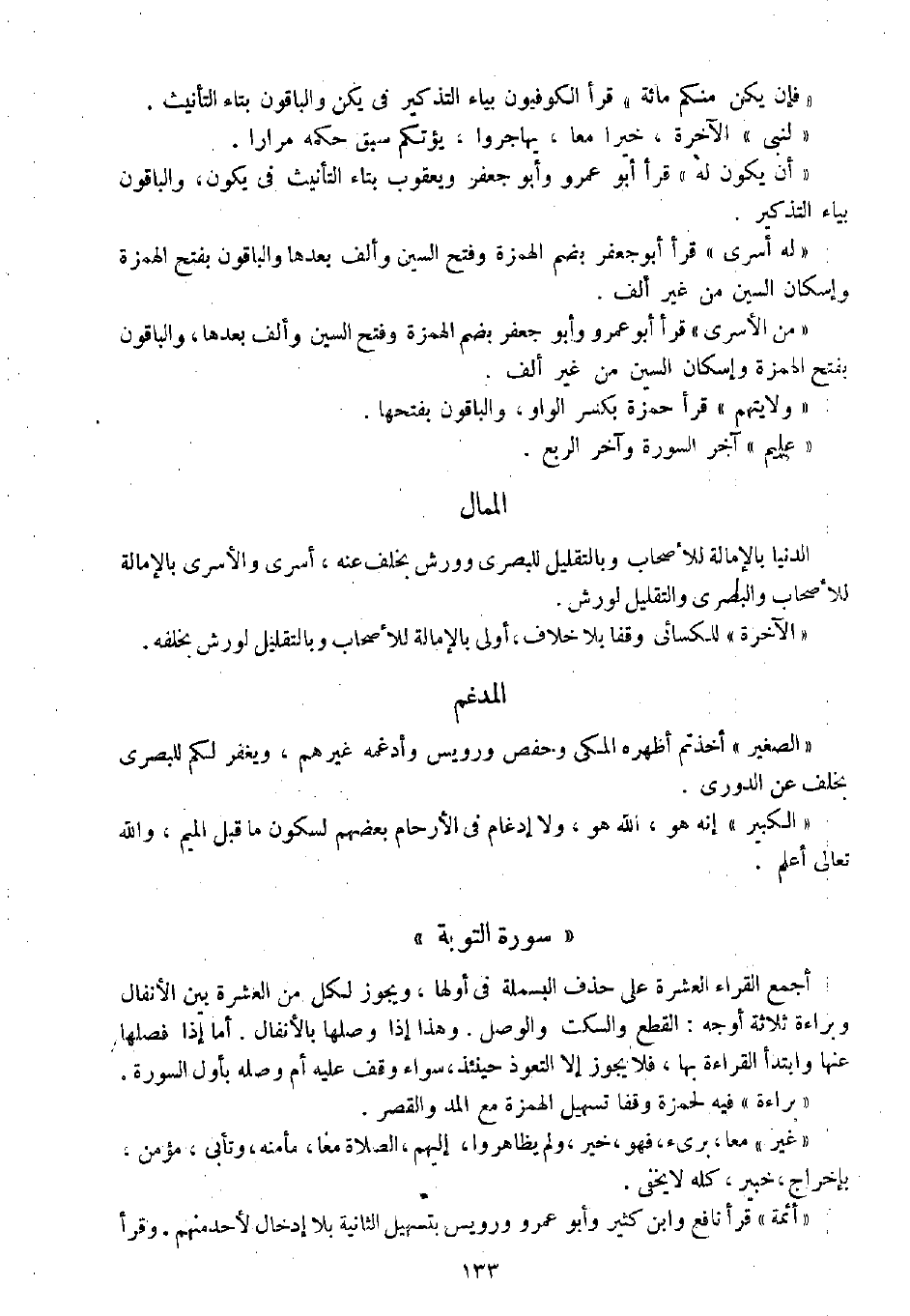 الدنيا بالإمالة للأصحاب وبالتقليل للبصري وورش بخلف عنه، أسرى والأسرى بالإمالة للأصحاب والبصري والتقليل لورش.