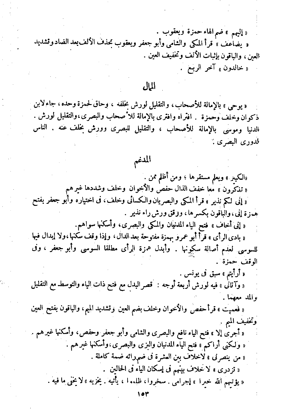 " يوحى " بالإمالة للأصحاب، والتقليل لورش بخلفه، وحاق لحمزة وحده، جاء لابن ذكوان وخلف وحمزة، افتراه وافترى بالإمالة للأصحاب والبصري، والتقليل لورش.