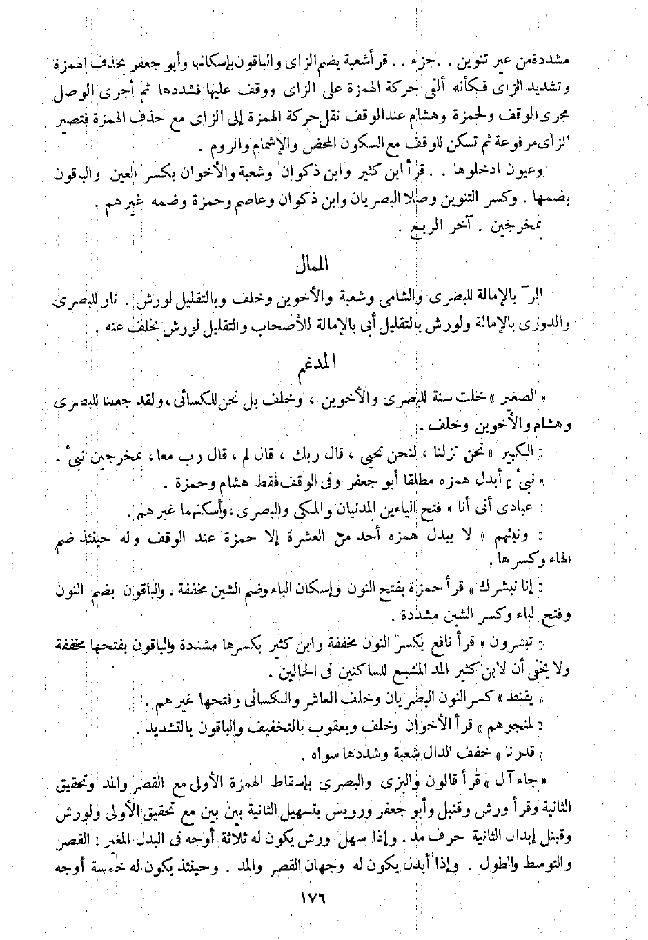 الر بالإمالة للبصري والشامي وشعبة والأخوين وخلف وبالتقليل لورش. نار للبصري والدوري بالإمالة ولورش بالتقليل أبى بالإمالة للأصحاب والتقليل لورش بخلف عنه.