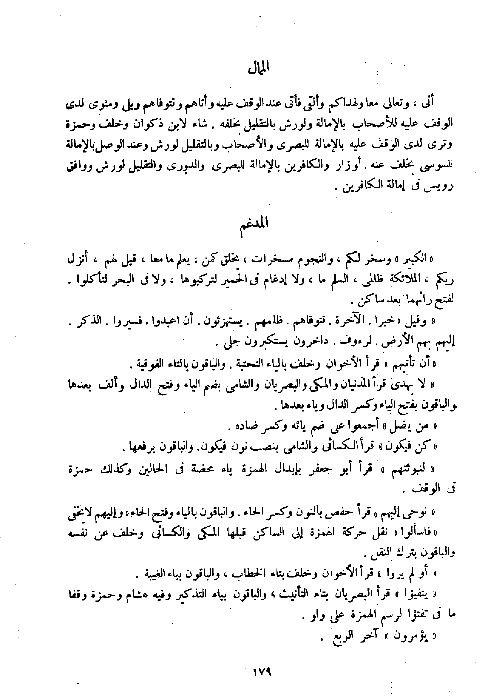 " الكبير " وسخر لكم، والنجوم مسخرات، يخلق كمن، يعلم ما معا، قيل لهم، أنزل ربكم، الملائكة ظالمى، السلم ما، ولا إدغام في الحمير لتركبوها، ولا في البحر لتأكلوا.