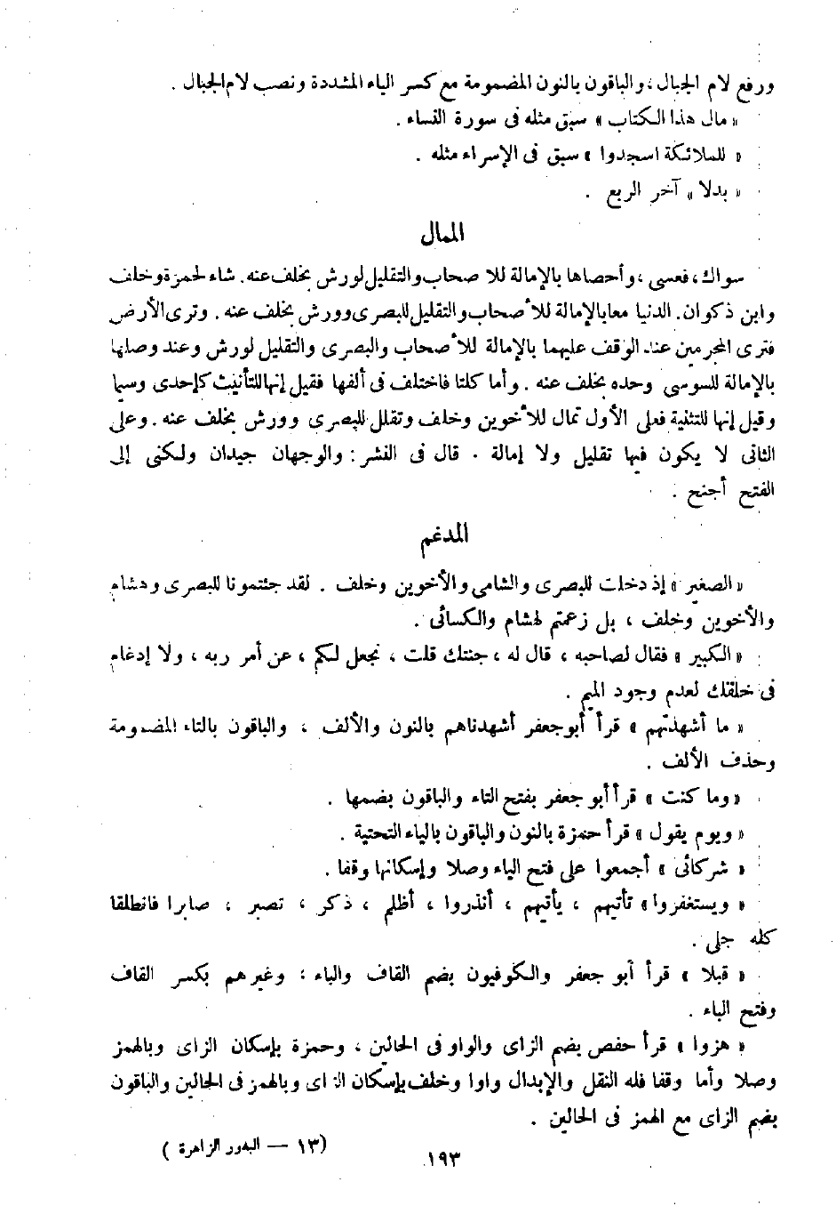 " الصغير " إذ دخلت للبصري والشامي والأخوين وخلف. لقد جئتمونا للبصري وهشام والأخوين وخلف، بل زعمتم لهشام والكسائي.