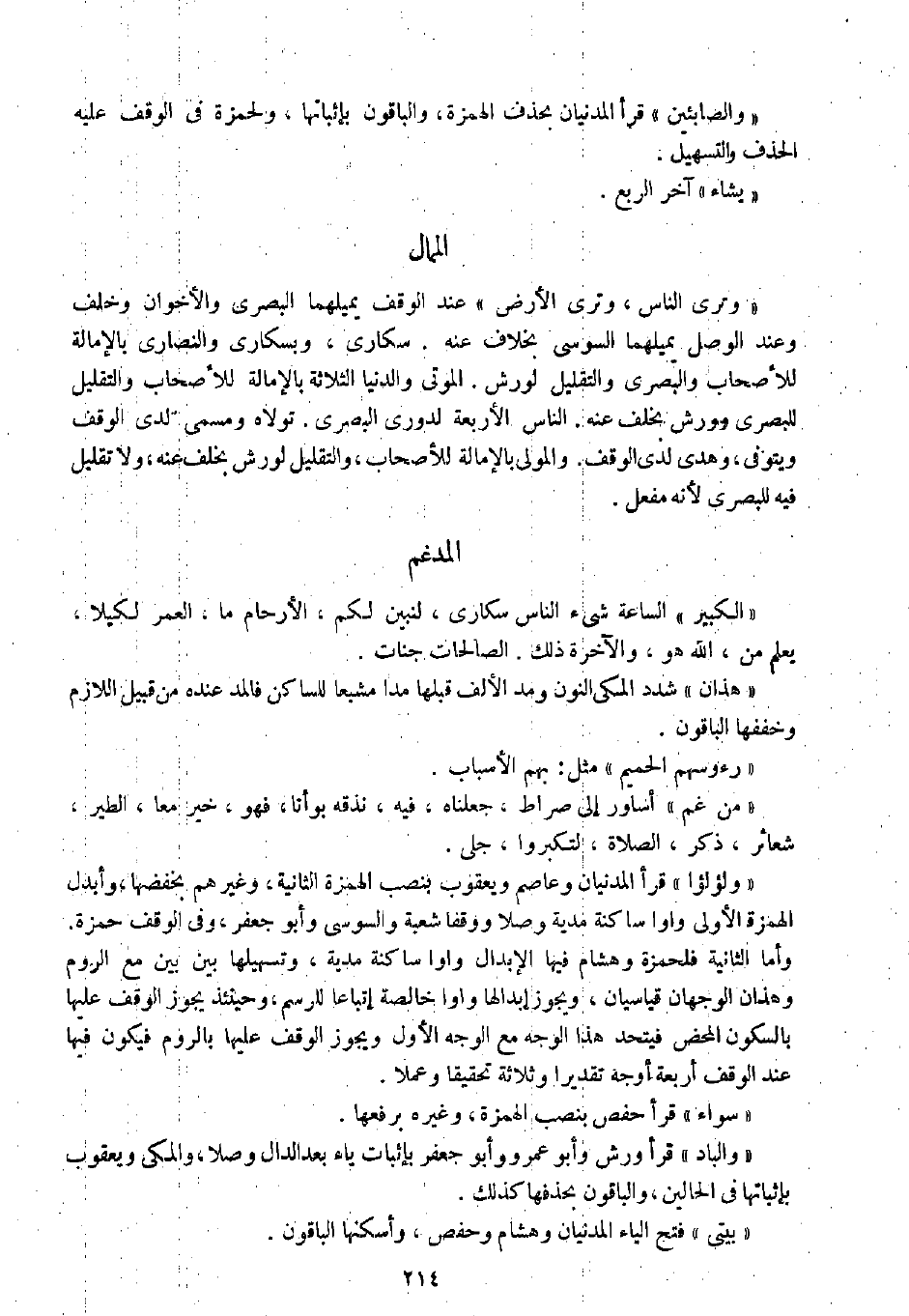 " وترى الناس، وترى الأرض " عند الوقف يميلهما البصري والأخوان وخلف وعند الوصل يميلهما السوسي بخلاف عنه. سكارى، وبسكارى والنصارى بالإمالة للأصحاب والبصري والتقليل لورش. الموتى والدنيا الثلاثة بالإمالة للأصحاب والتقليل للبصري وورش بخلف عنه. الناس الأربعة لدوري البصري. تولاه ومسمى لدى الوقف ويتوفى، وهدى لدى الوقف. والمولى بالإمالة للأصحاب، والتقليل لورش بخلف عنه، ولا تقليل فيه للبصري لأنه مفعل.