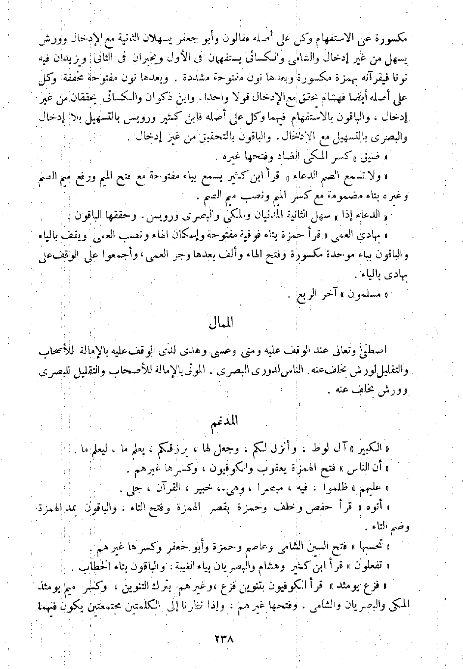" بهادي العمي " قرأ حمزة بتاء فوقية مفتوحة وإسكان الهاء ونصب العمي ويقف بالياء والباقون بباء موحدة مكسورة وفتح الهاء وألف بعدها وجر العمي، وأجمعوا على الوقف على بهادي الياء.